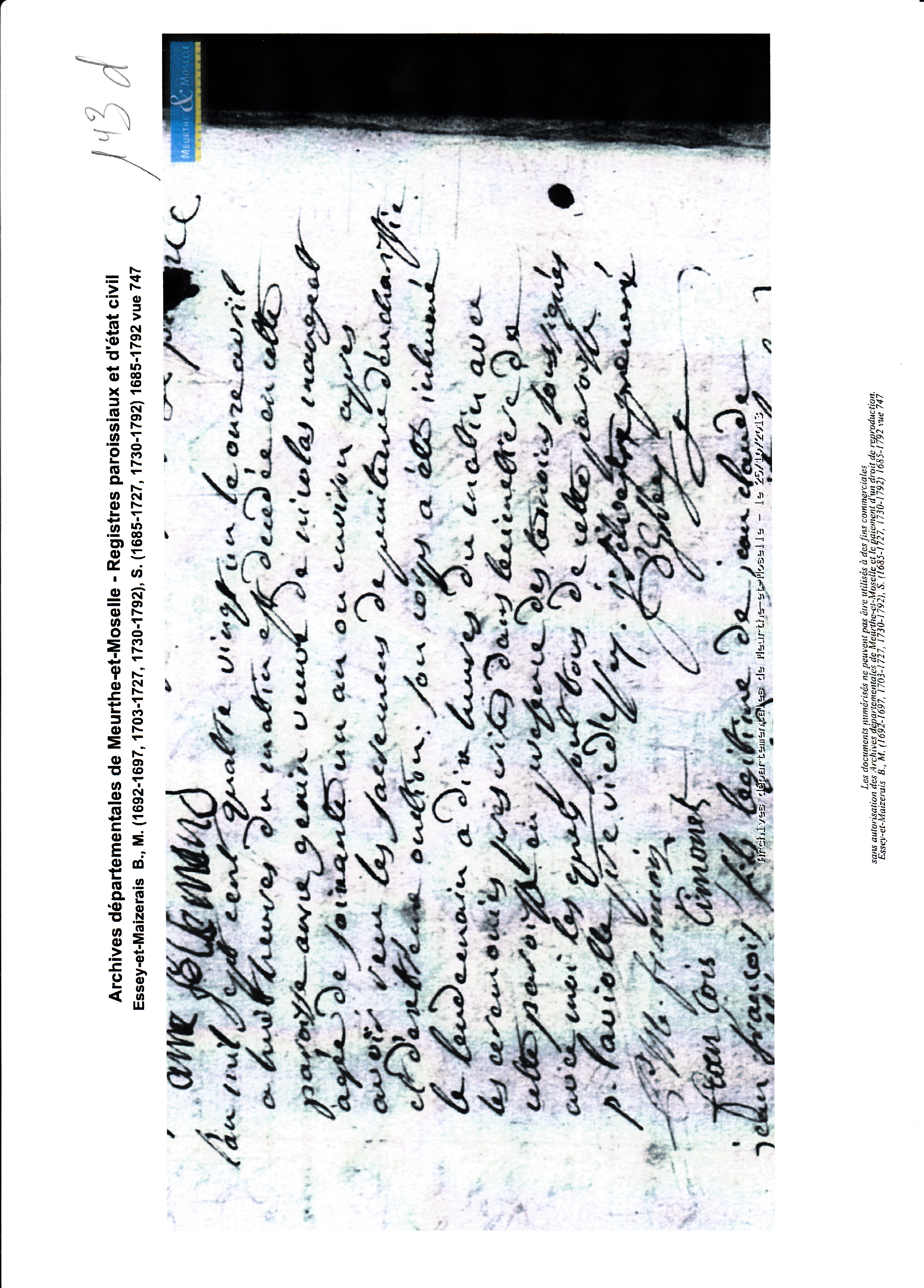 Décès : 11 avril 1781 à Essey et Maizerais 54470 ( Source )