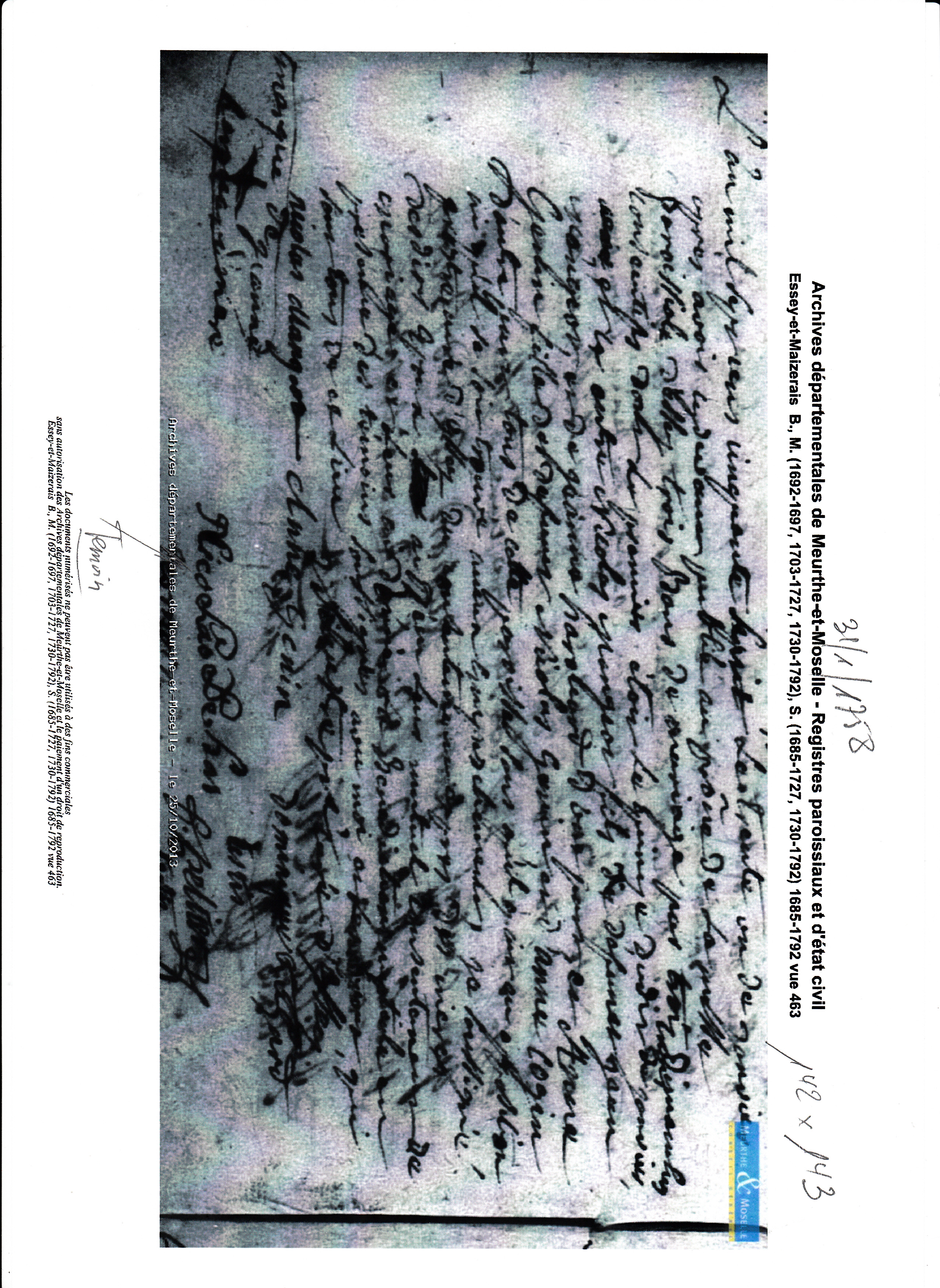 Mariage : 3 janvier 1758 à Essey et Maizerais 54470 ( Source )