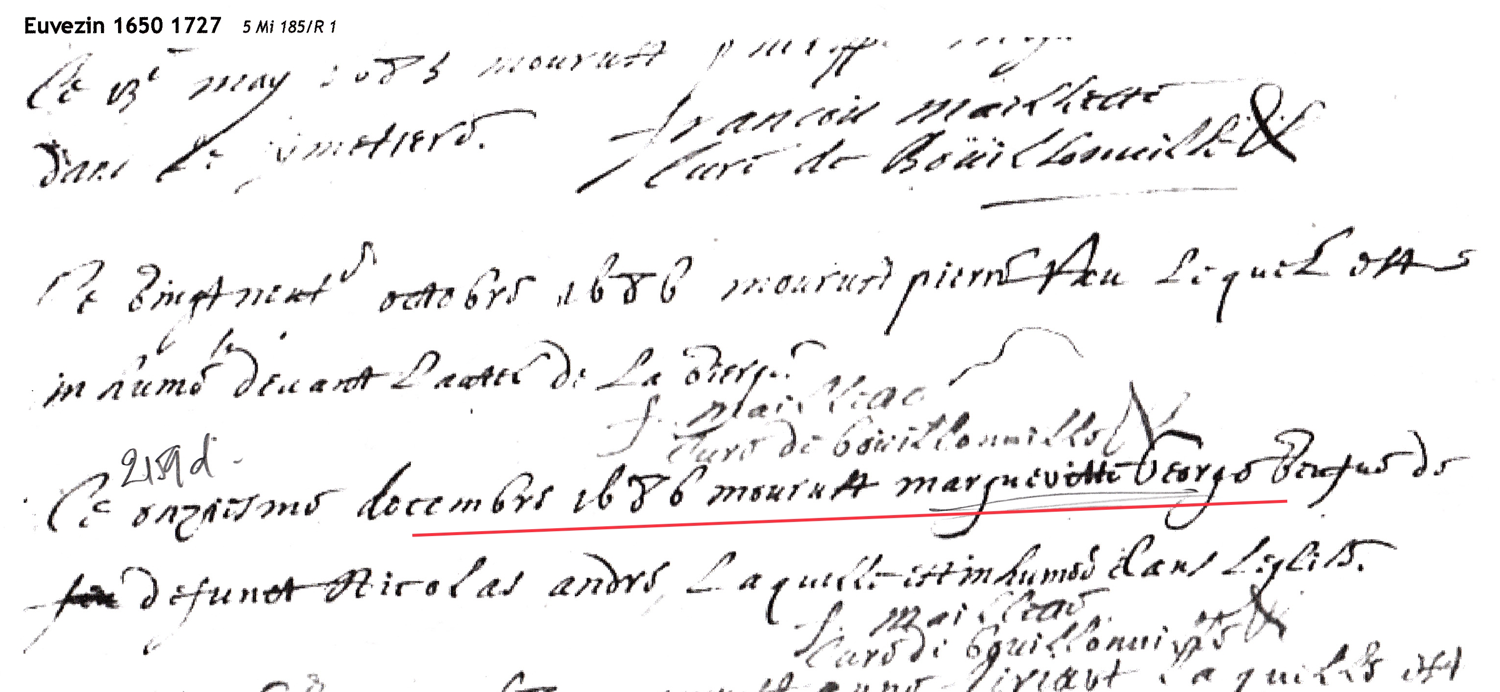 Naissance : avant 1620 Décès : 11 décembre 1686 à Euvezin 54470 ( Source )