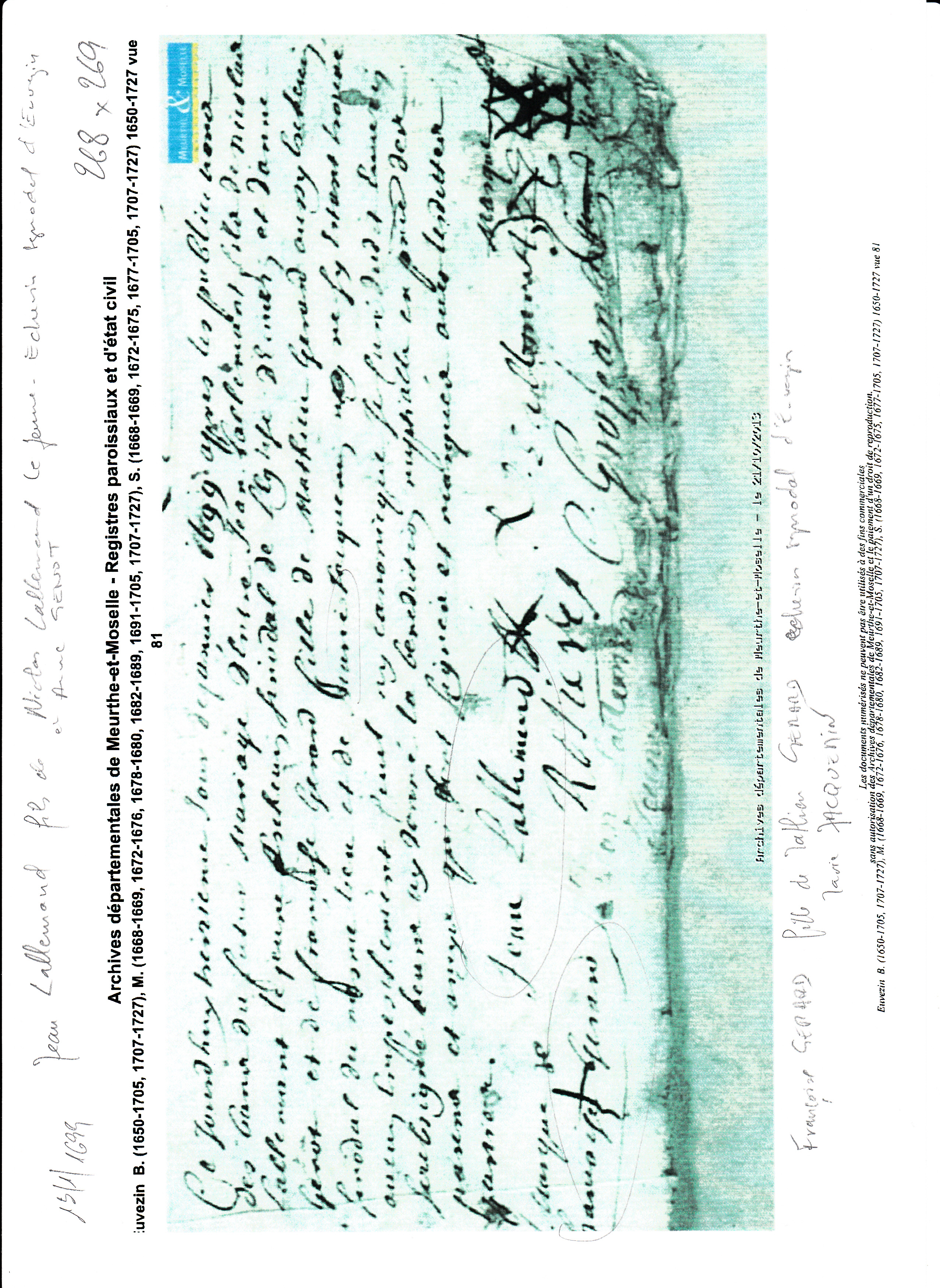 Témoin :LALLEMAND Jean L'Aîné ( 1678 - 1753 )