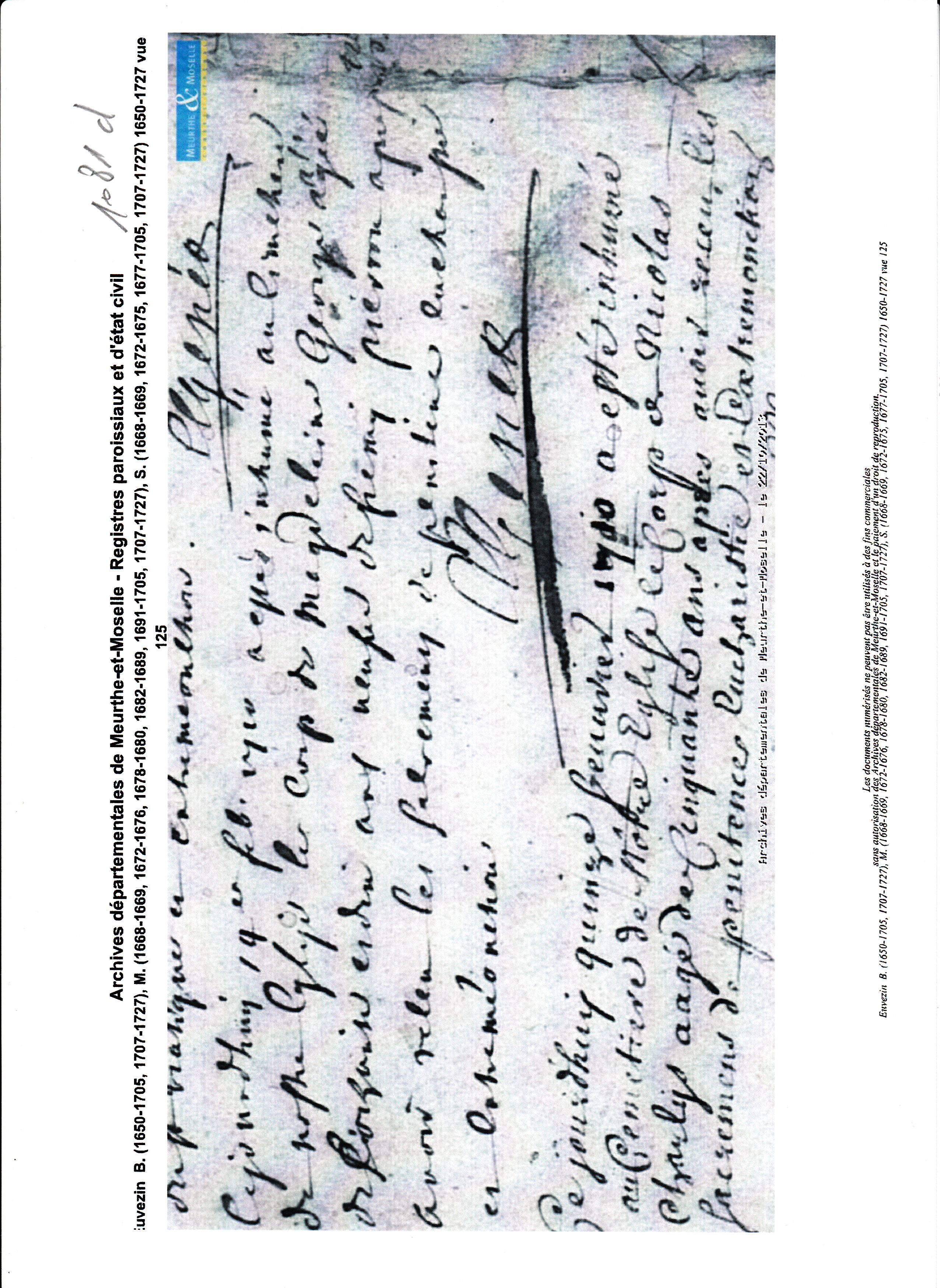 Naissance : 1645 à Euvezin 54470 Décès : 14 février 1710 à Euvezin 54470 ( Source )