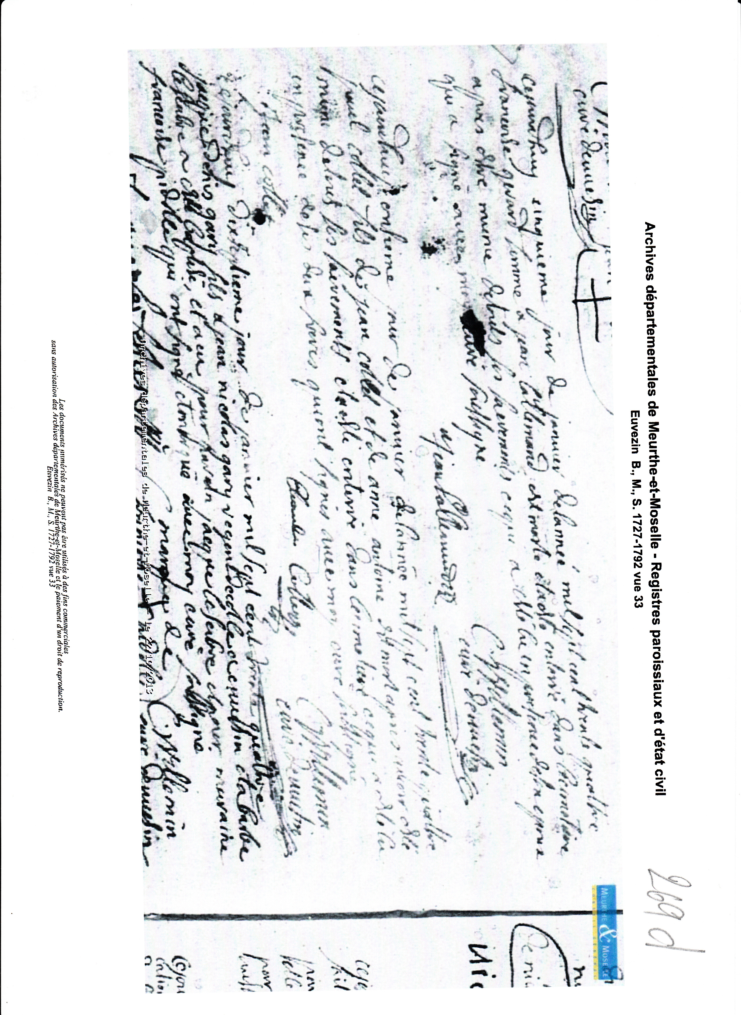 Mariage : 13 janvier 1699 à Euvezin 54470 ( Source )