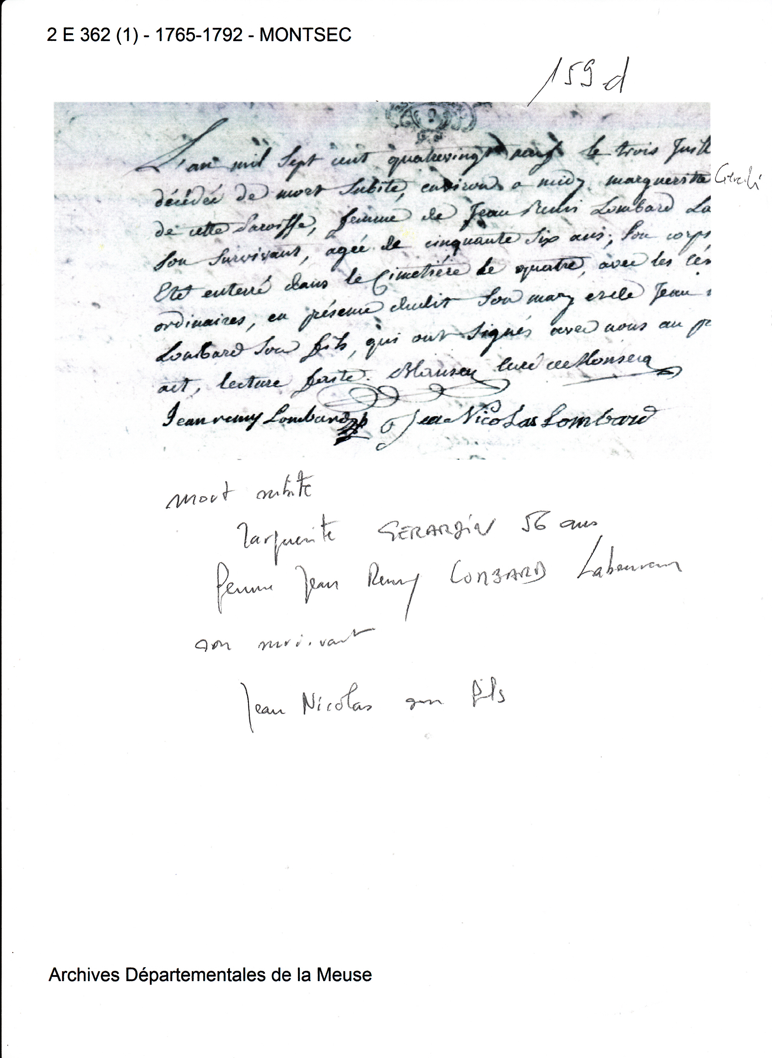 56 ans à son dcDécès : 3 juillet 1789 à Montsec 55300 ( Source )