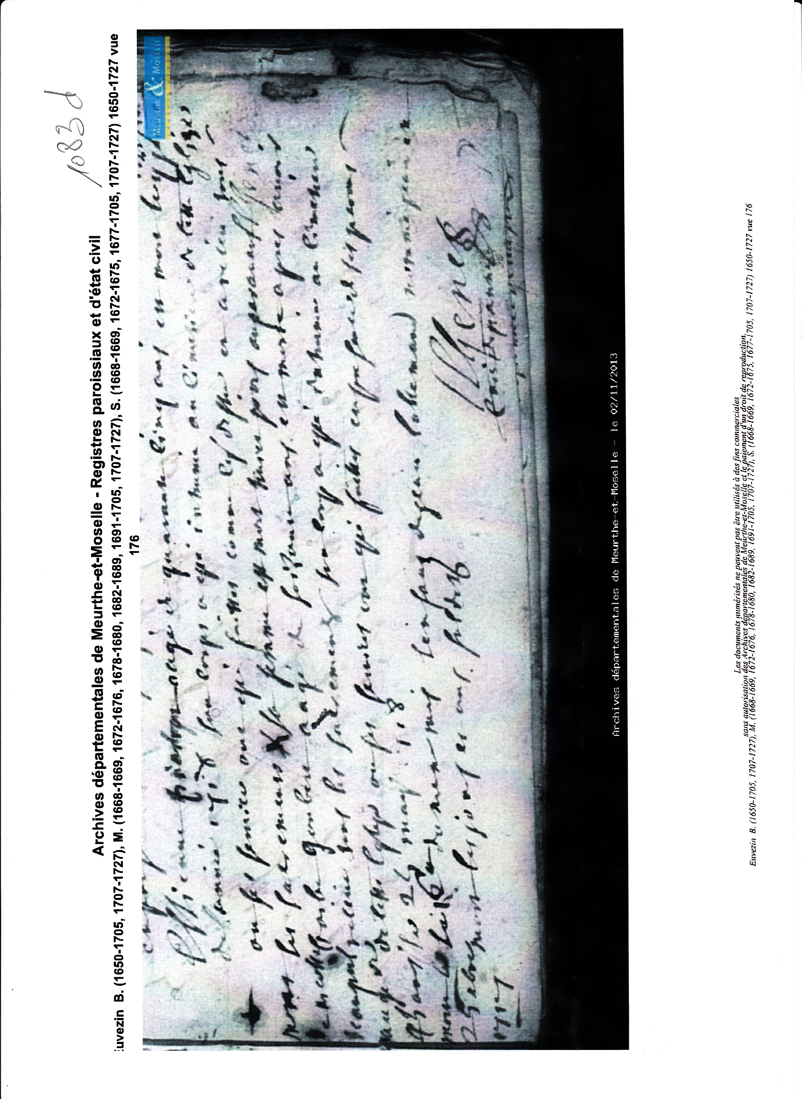 Mariage : 26 novembre 1701 à Euvezin 54470