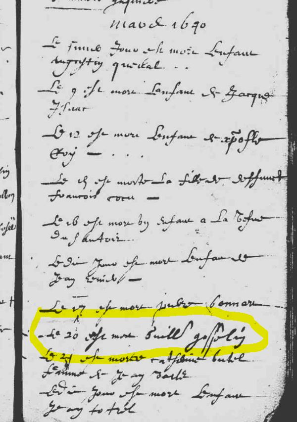 GOSSELIN Guillaume Père ( 1640 - 1690 )