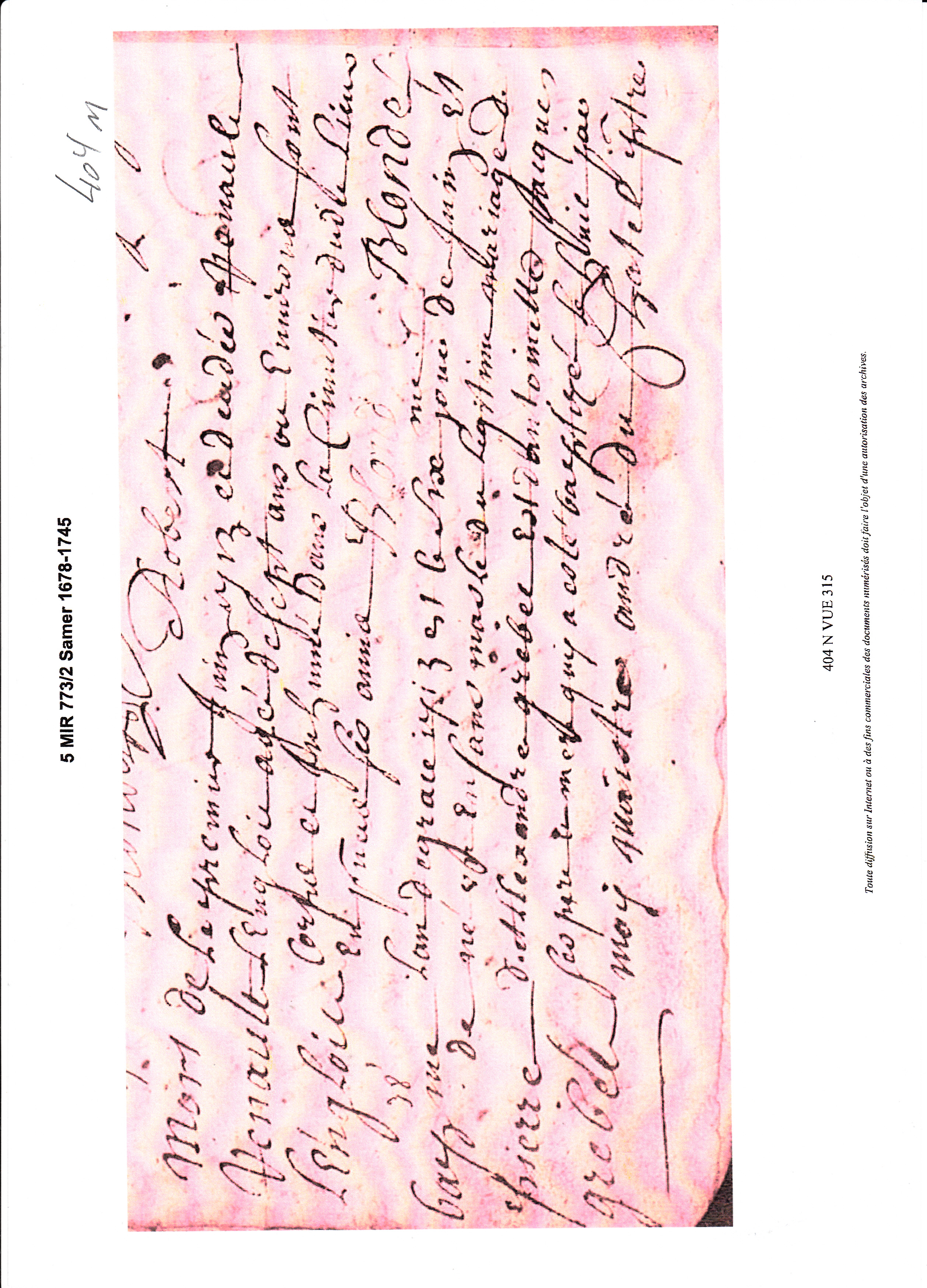Registre commence en 1628Décès : 26 novembre 1674 à Samer 62830 ( Source )