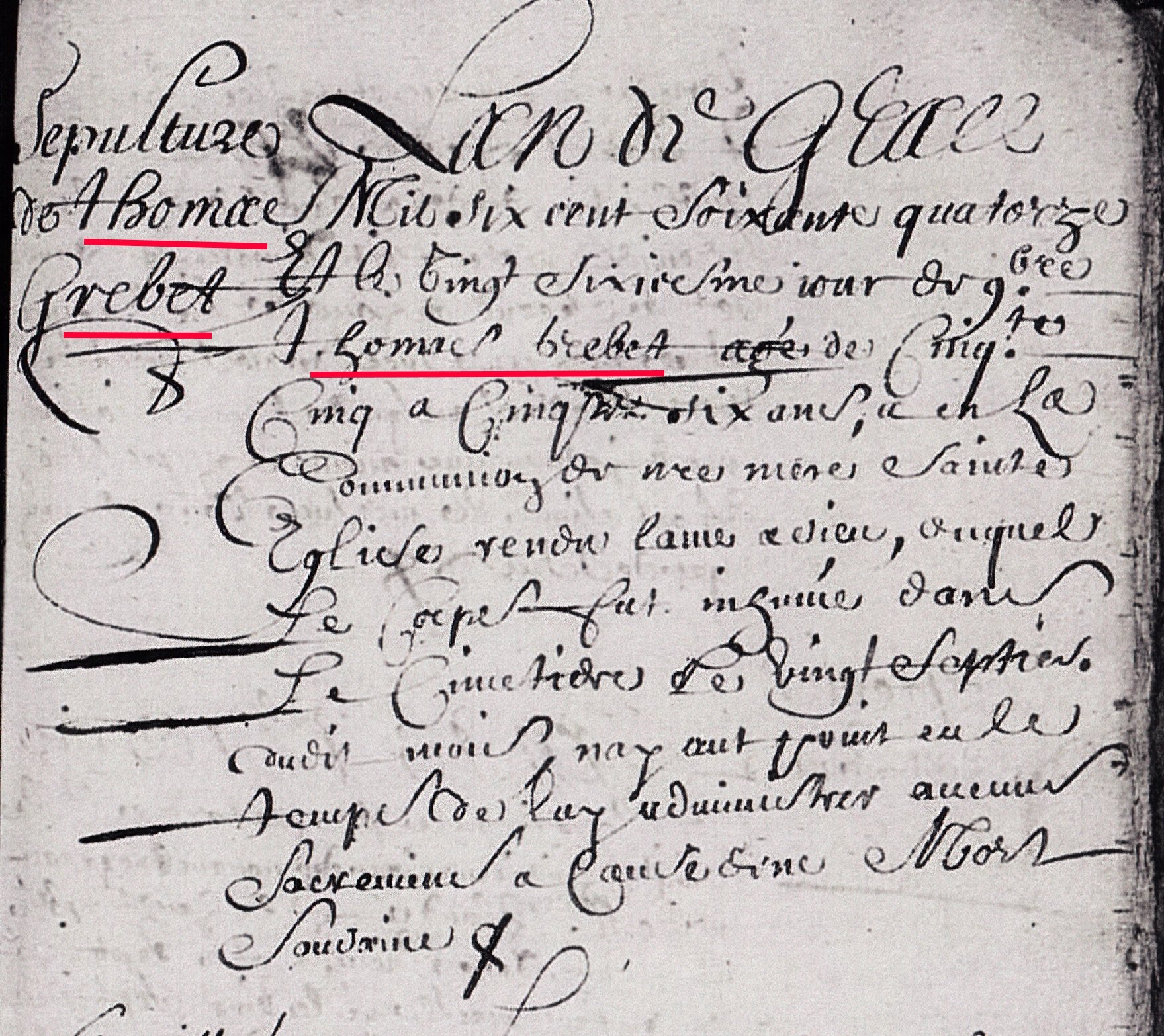 Père : GREBET Thomas ( ~ 1619 - 1674 )