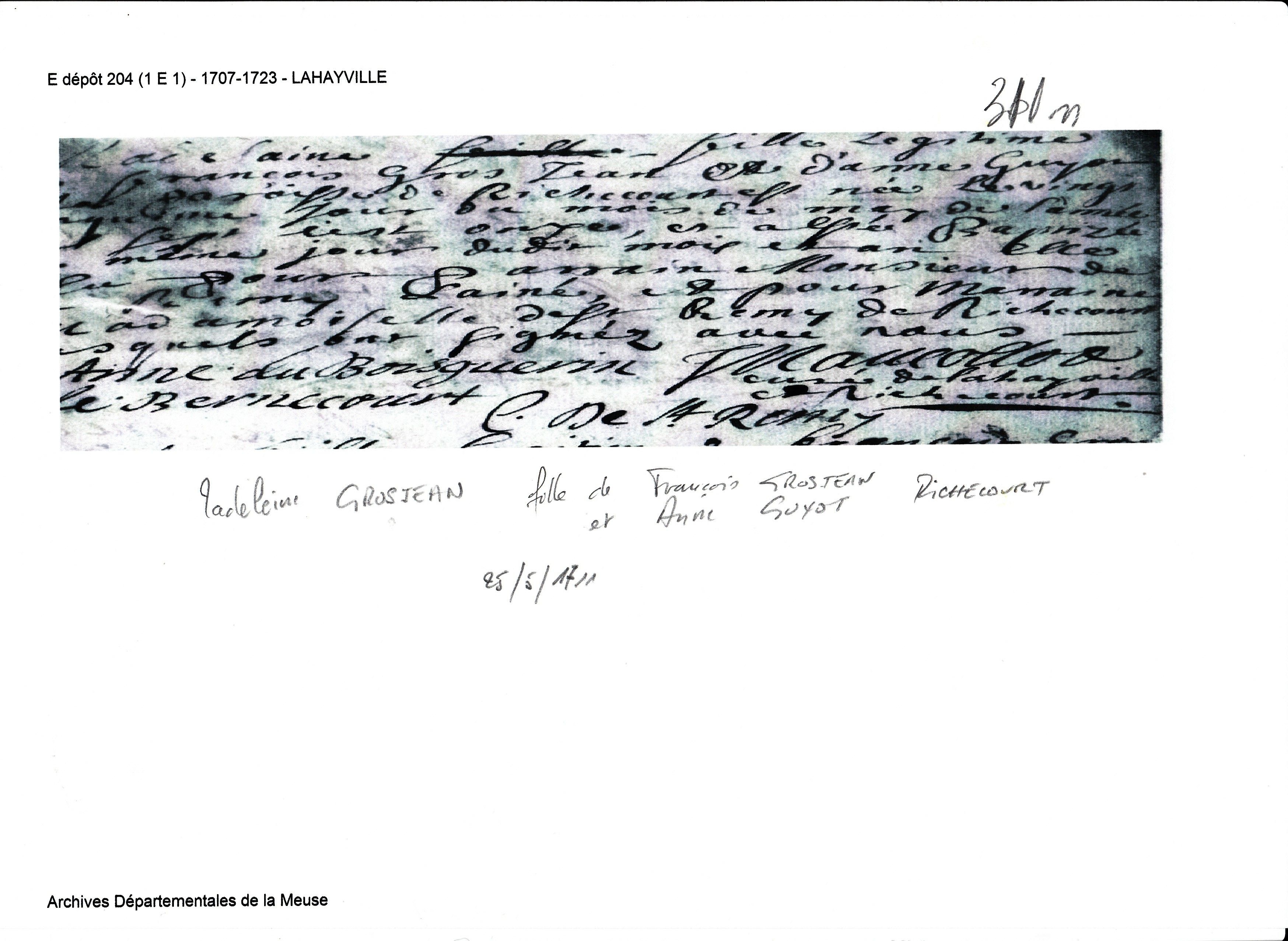 Naissance : 25 novembre 1711 à Richecourt 55300 ( Source )