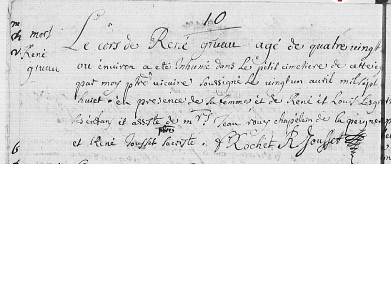 Naissance : 31 janvier 1637 à Rouez 72140 Décès : 14 mai 1716 à Pezé-le-Robert 72140