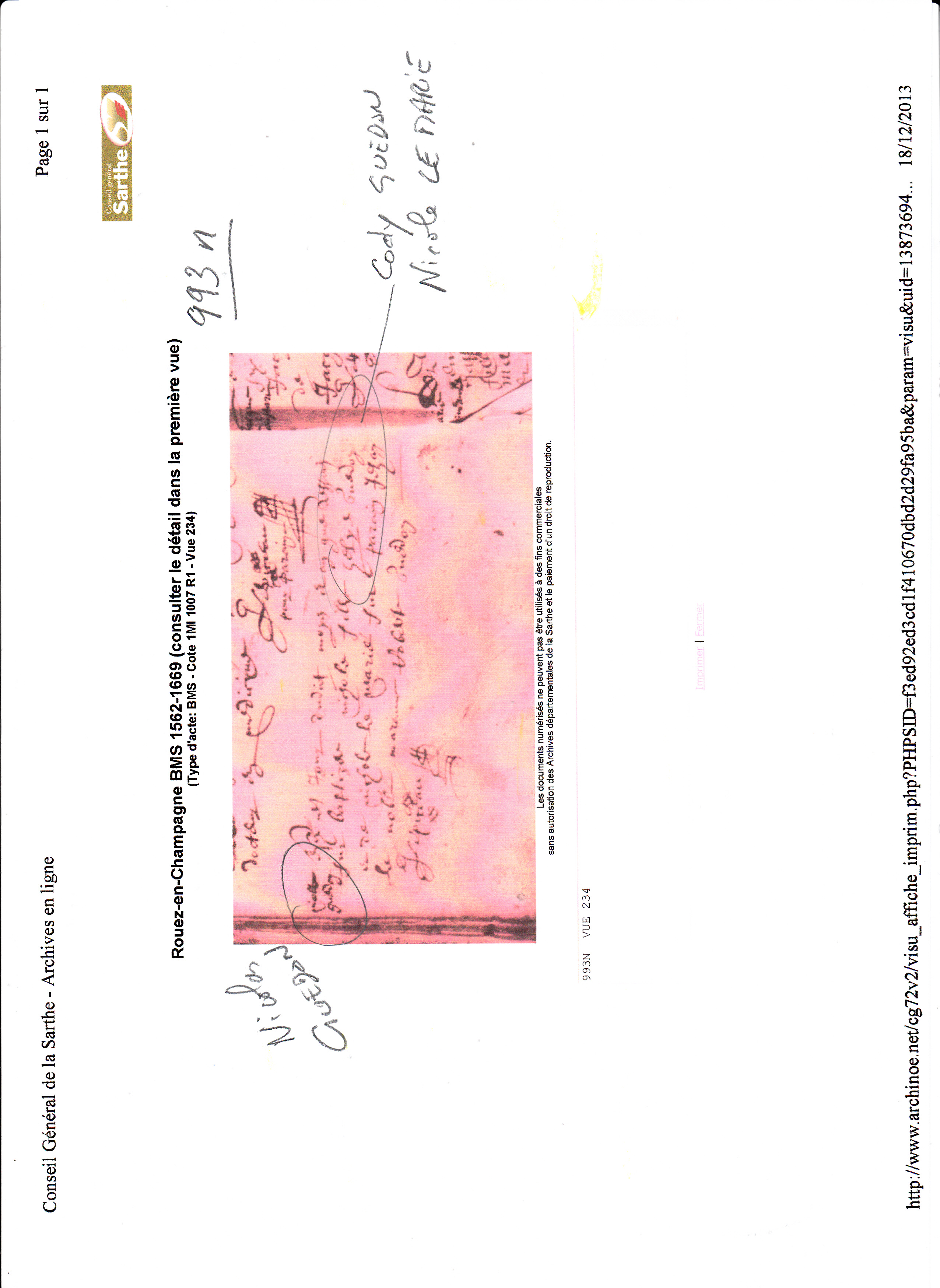 Naissance : 26 décembre 1634 à Rouez 72140