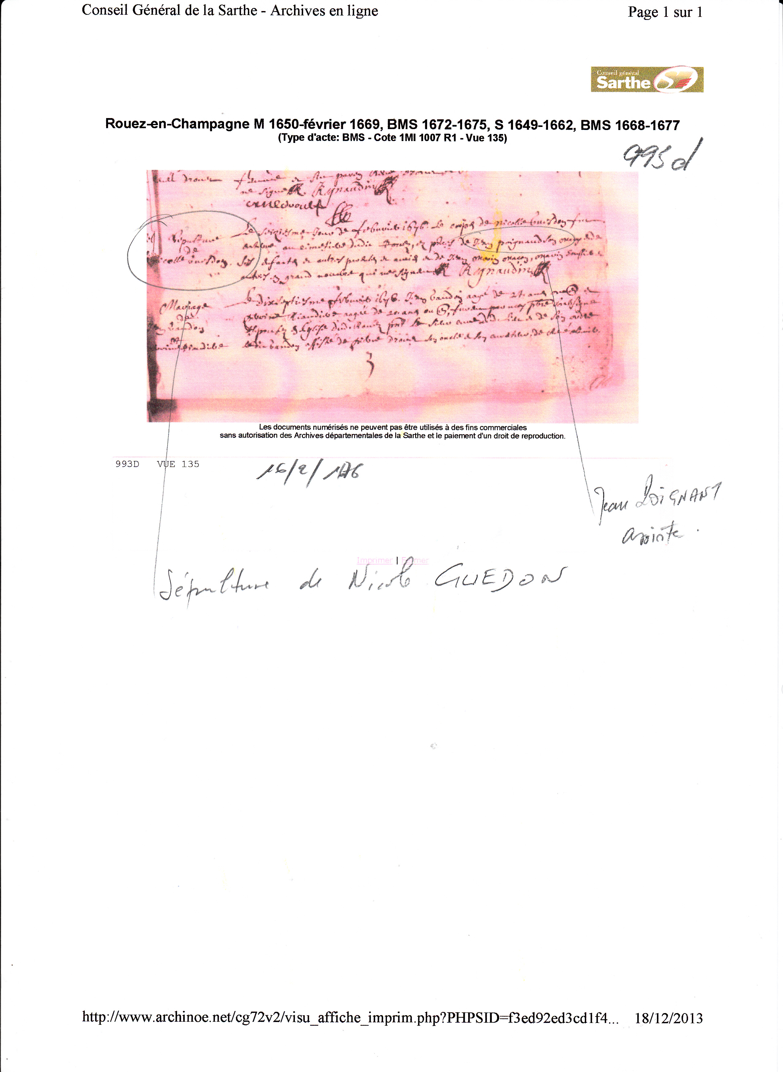 Décès : 16 février 1676 à Rouez 72140 ( Source )