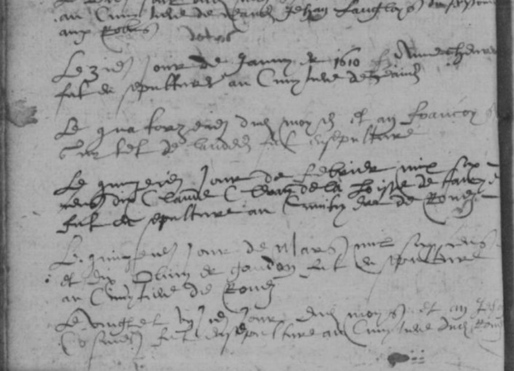 Naissance : J vers 1565 Décès : 3 avril 1601 à Tennie 72240 ( Source )