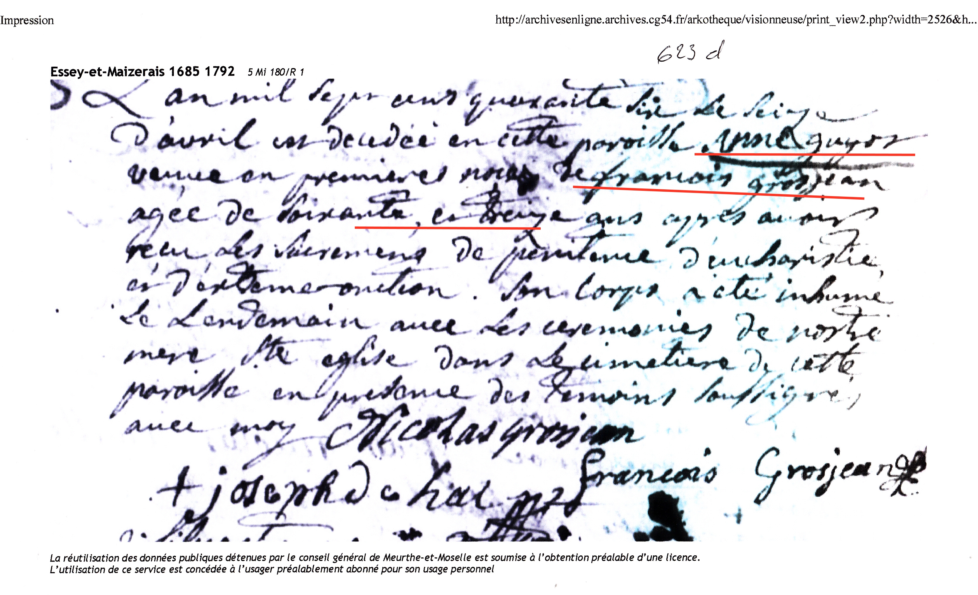 Union : GROSJEAN François ( ~ 1670 - 1715 )