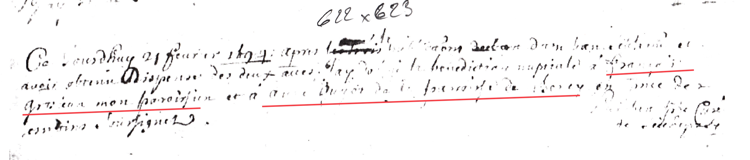 Mariage : 21 février 1694 à Seicheprey 54470 ( Source )