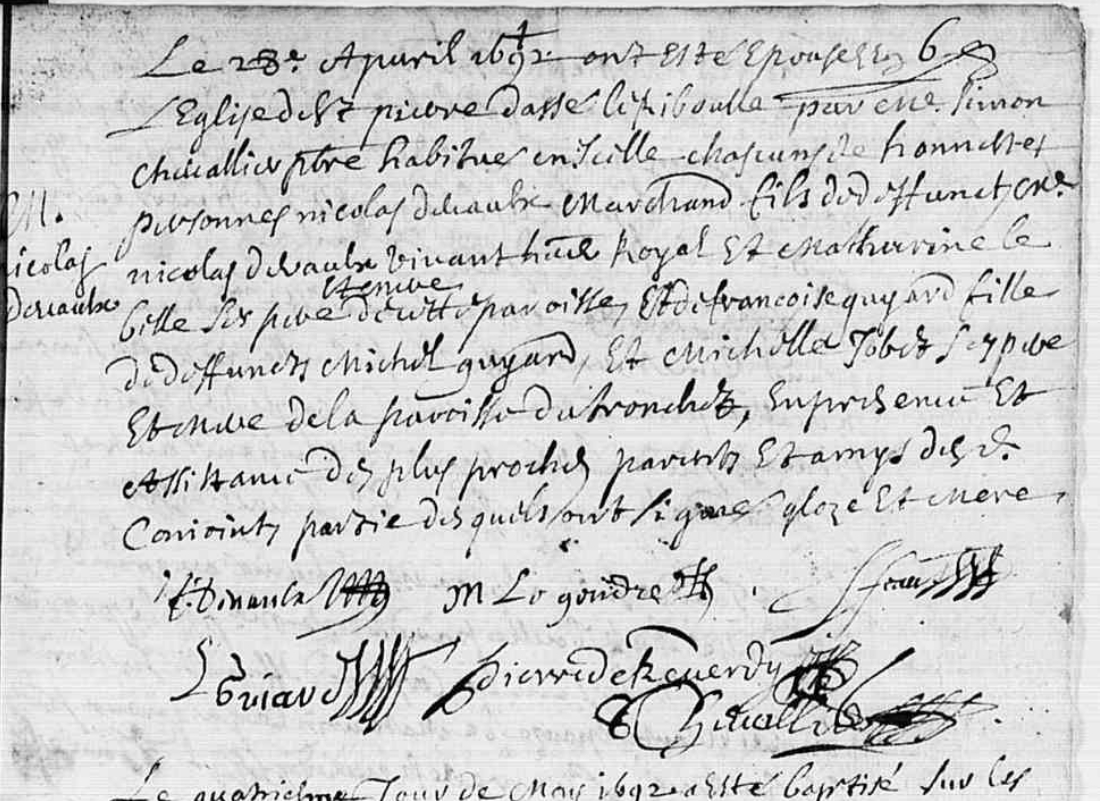 Mariage : 31 août 1671 à Le Tronchet 72170 ( Source )