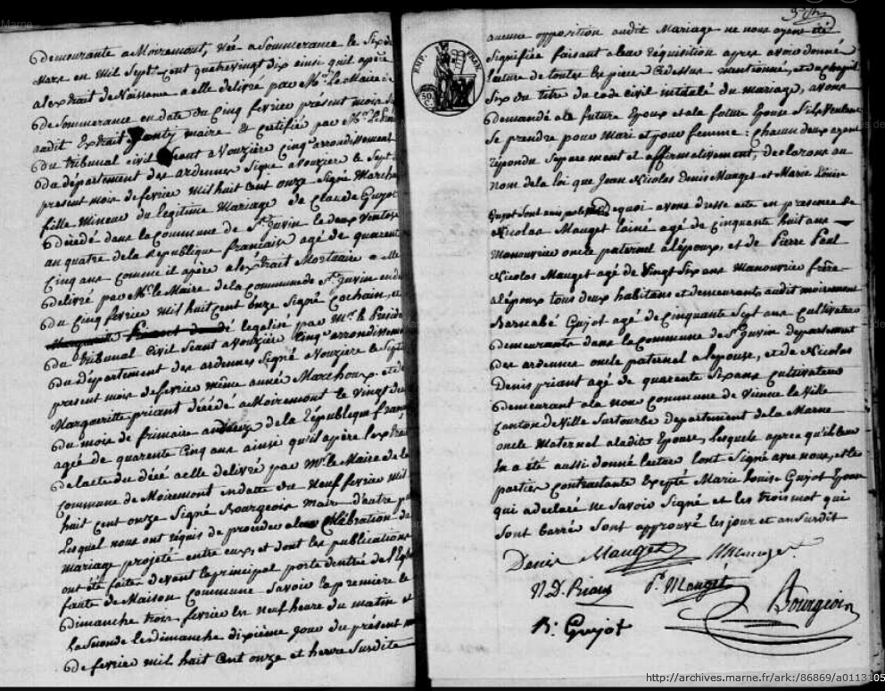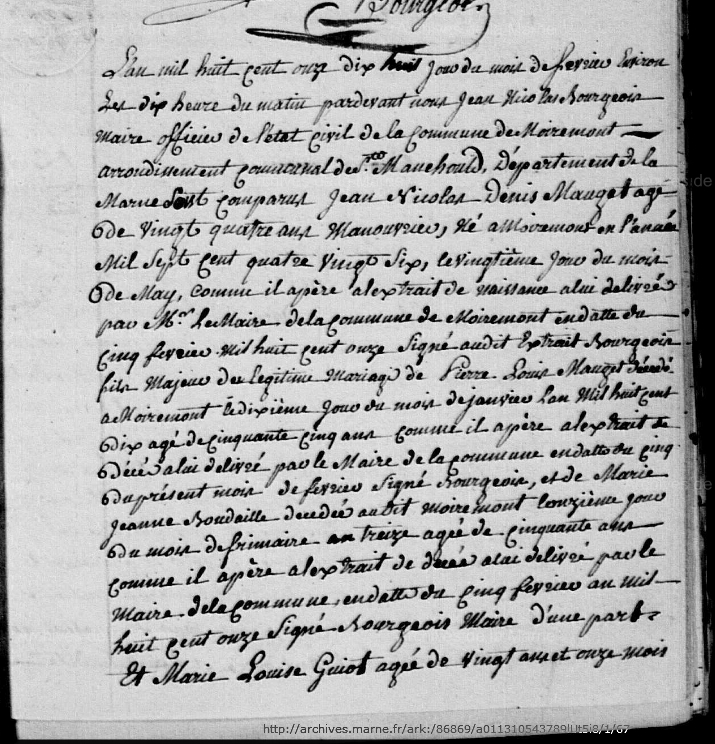 Mariage : 18 février 1811 à Moiremont 51 ( Source )
