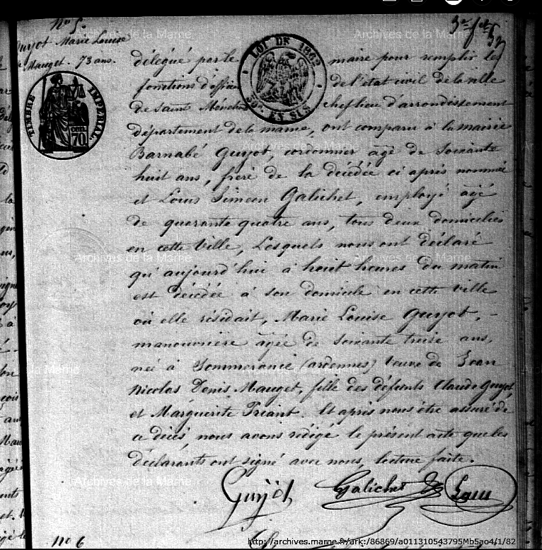Naissance : 1788 Décès : 8 avril 1867 à Moiremont 51