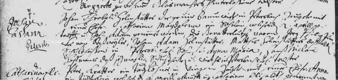 Enfant : HELMSTETTER Johan Mathias ( 1654 - ? )