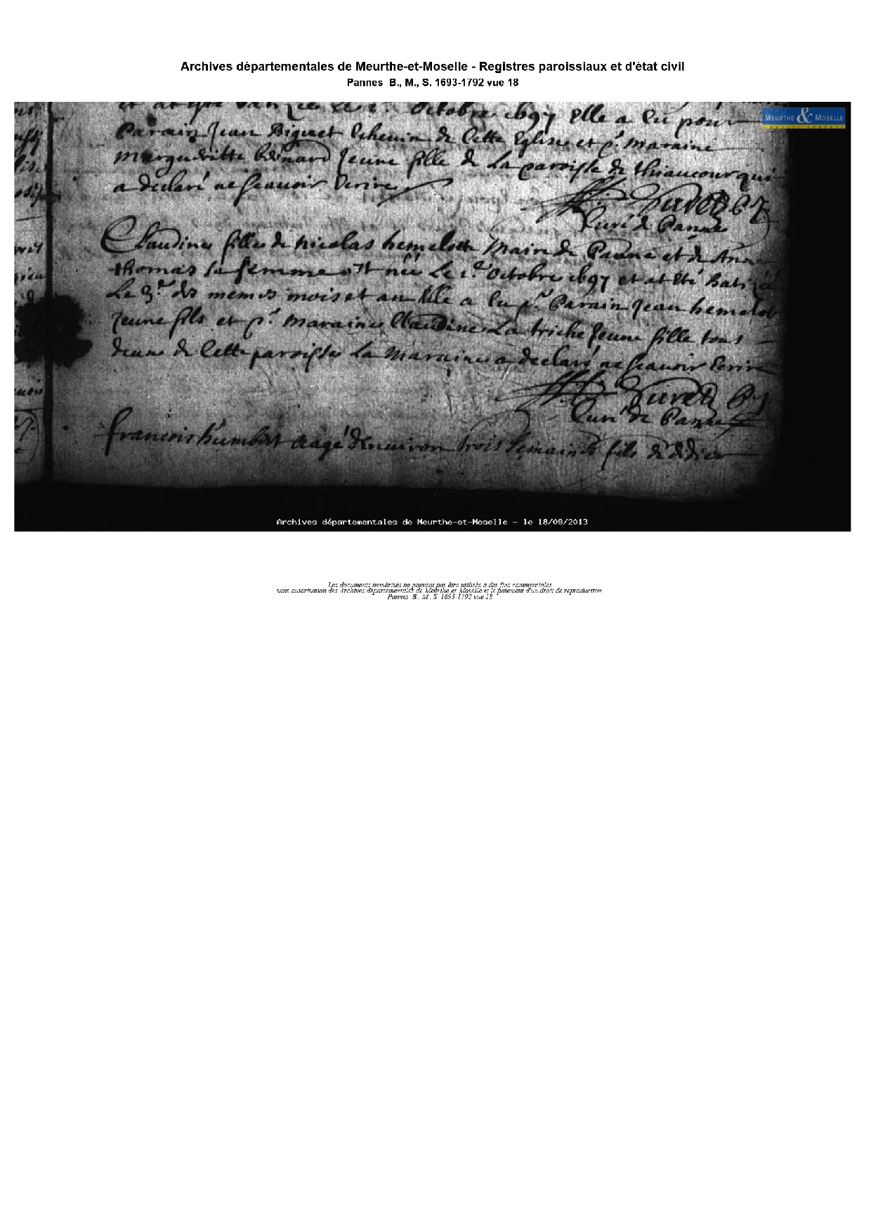 Naissance : 1er octobre 1697 à Pannes 54470 ( Source )