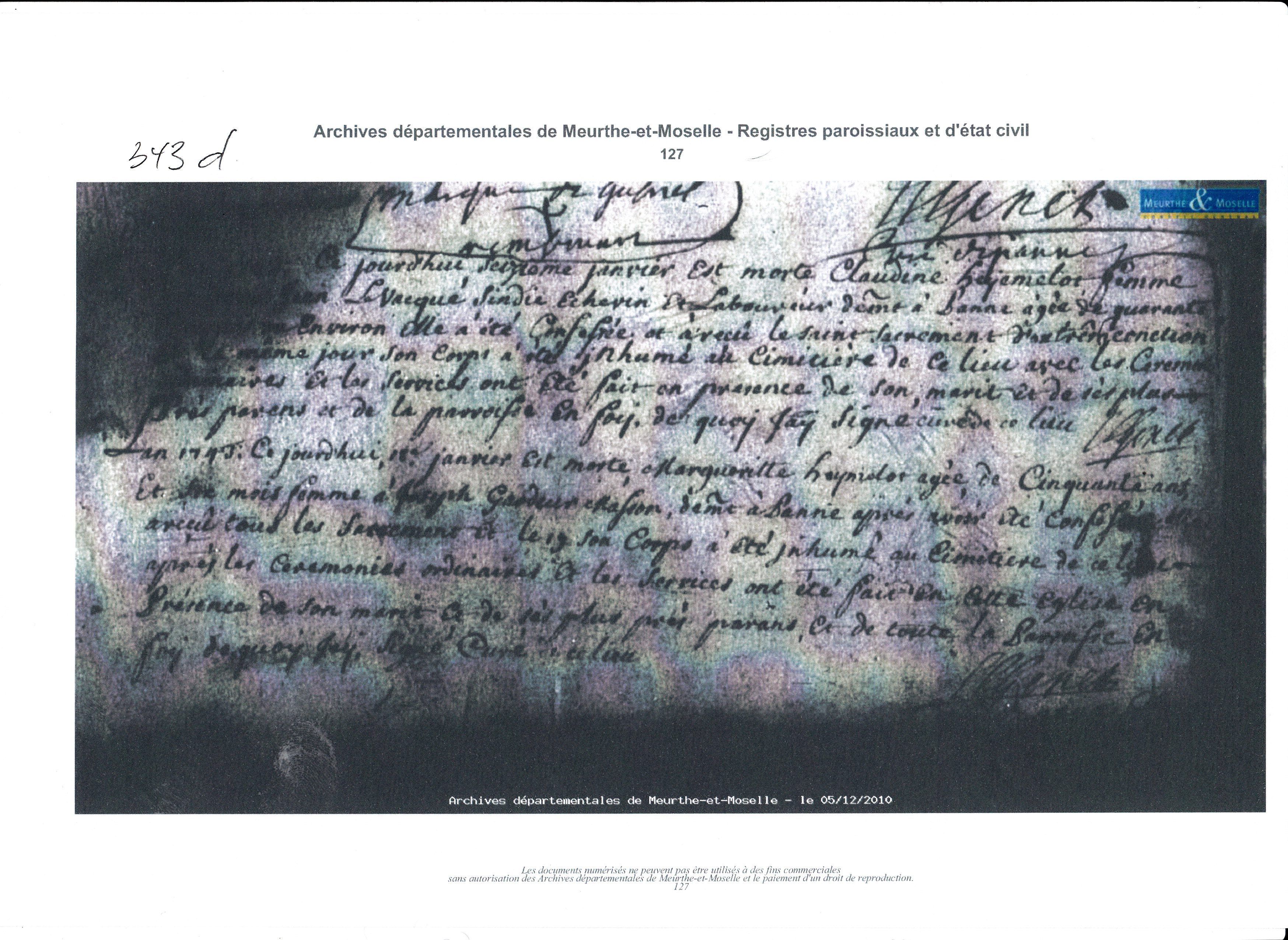 Décès : 16 janvier 1743 à Pannes 54470 ( Source )