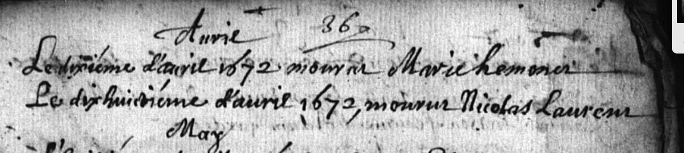 Naissance : vers 1620 Décès : 10 avril 1672 à Noviant aux Pres 54380 ( Source )