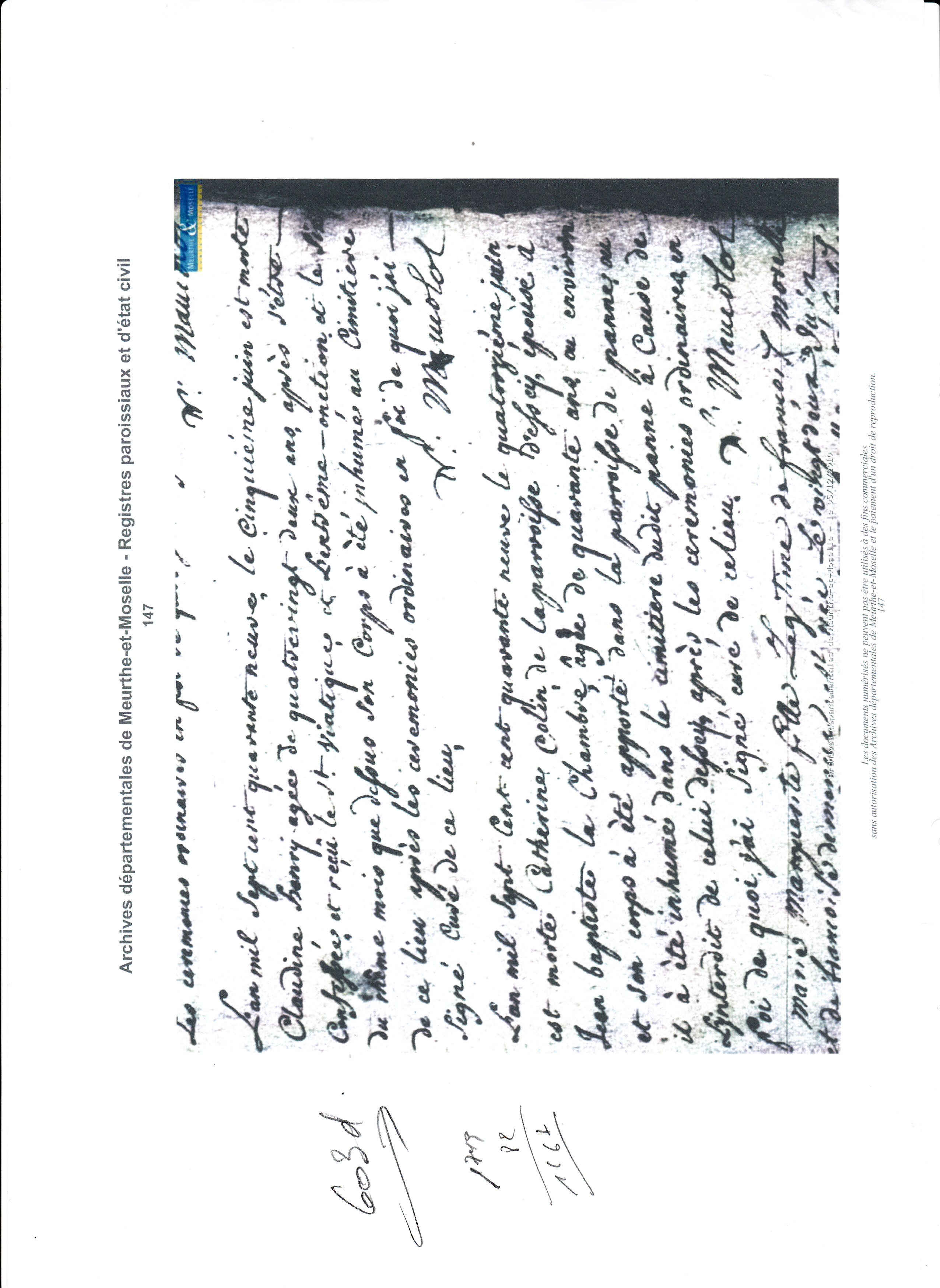Naissance : 1700 à Aubréville 55120 Décès : 14 septembre 1747 à Aubréville 55120 ( Source )