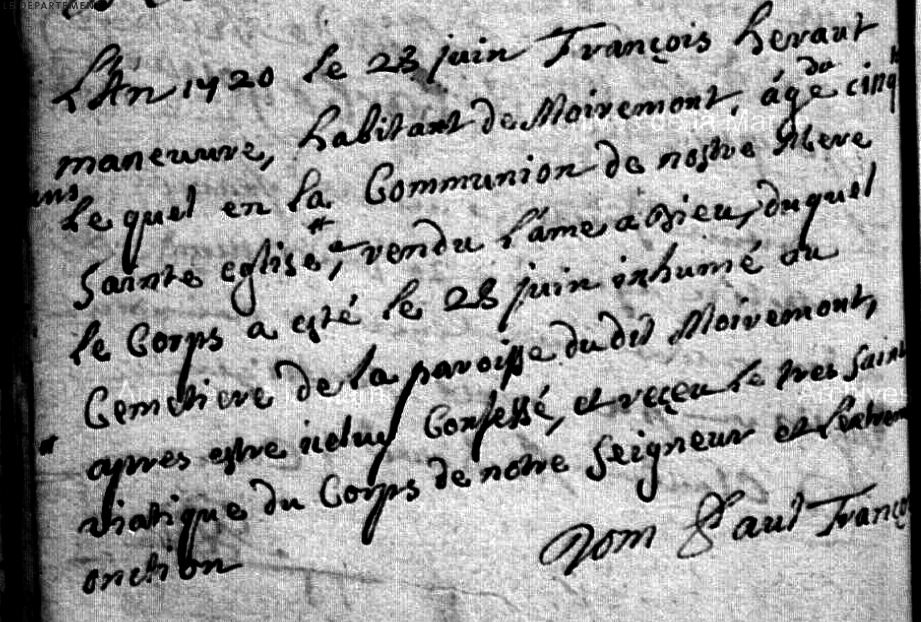 Décès : 28 juin 1720 à Moiremont 51 ( Source )