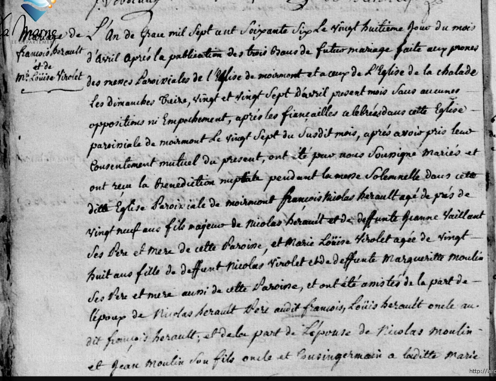 Mariage : 28 avril 1766 à Moiremont 51 ( Source )