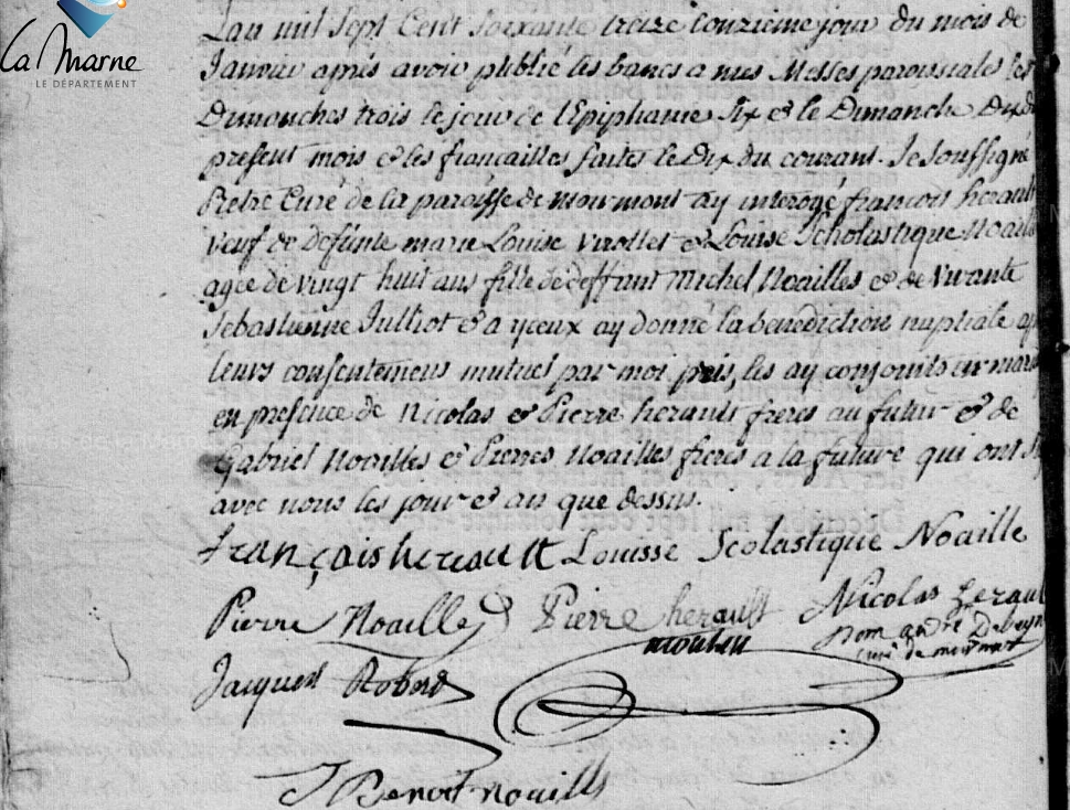 Mariage : 11 janvier 1773 à Moiremont 51 ( Source )