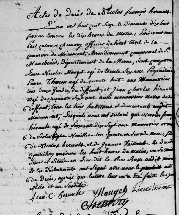 Décès : 18 février 1816 à Moiremont 51 ( Source )