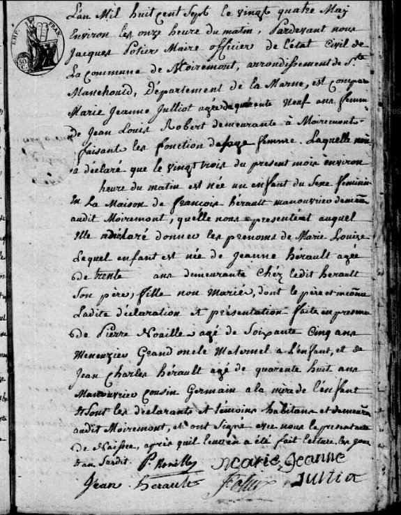 Mère : HERAULT Jeanne ( 1777 - 1853 )