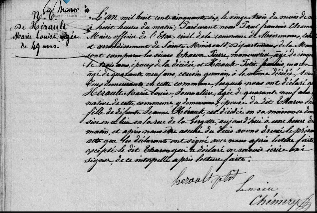 Décès : 23 mai 1856 à Moiremont 51 ( Source )