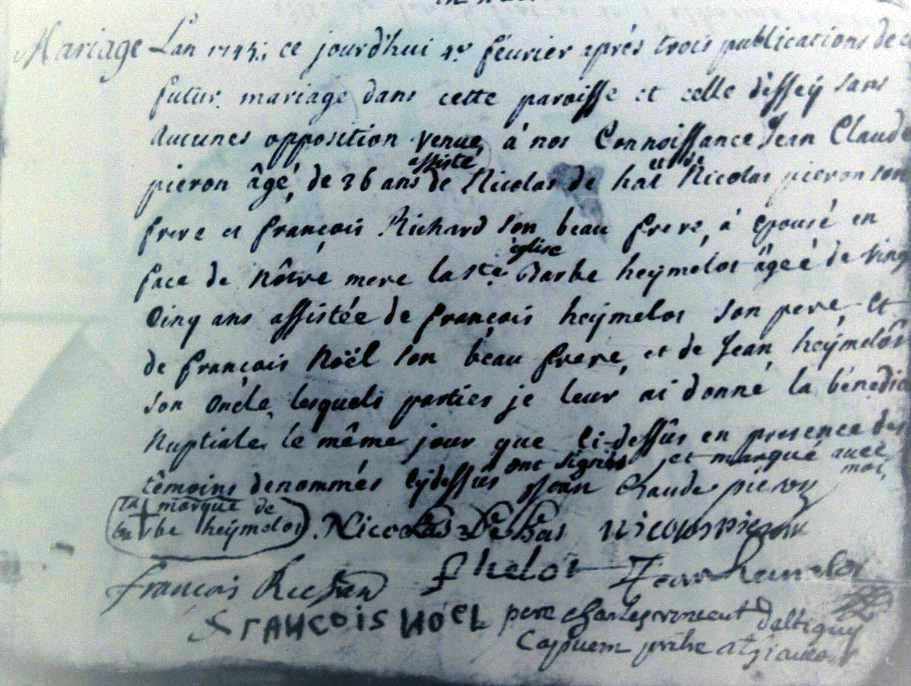 Père : HEYMELOT HEMELOT Nicolas ( < 1670 - > 1735 )
