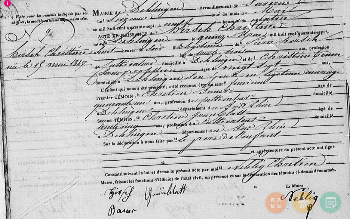 Témoins :BAUER Chrétien ( ~ 1806 - > 1870 )
