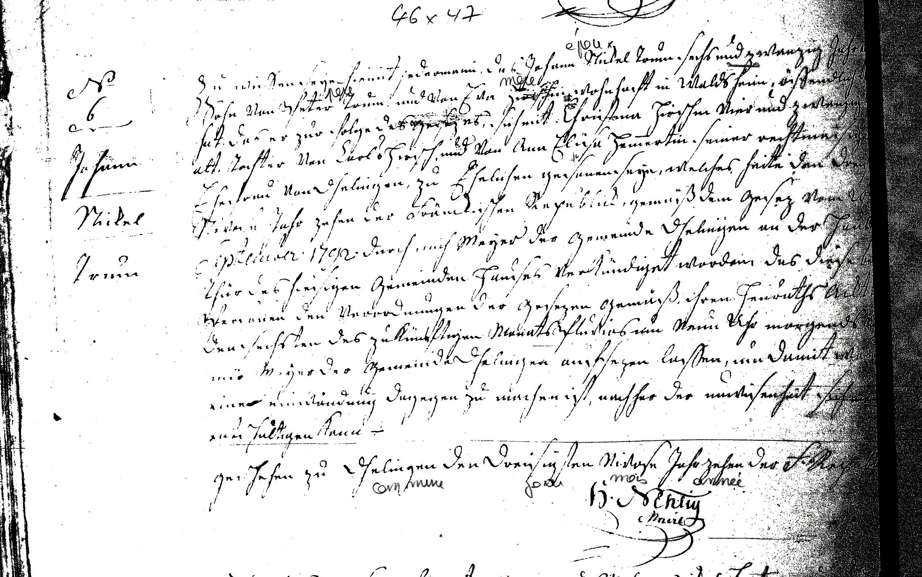 acte notarié du 5/8/1735 il est greffier de justice et a 66 ans