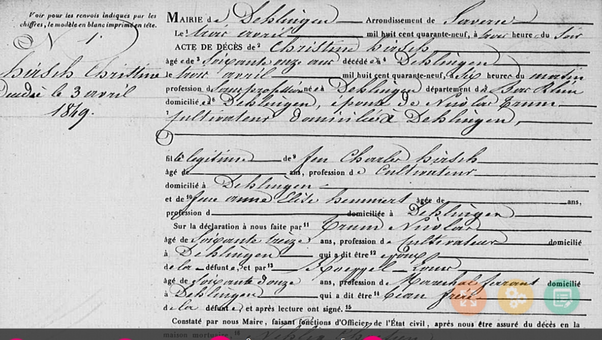 Décès : 3 avril 1849 à Dehlingen 67430 Alsace ( Source )