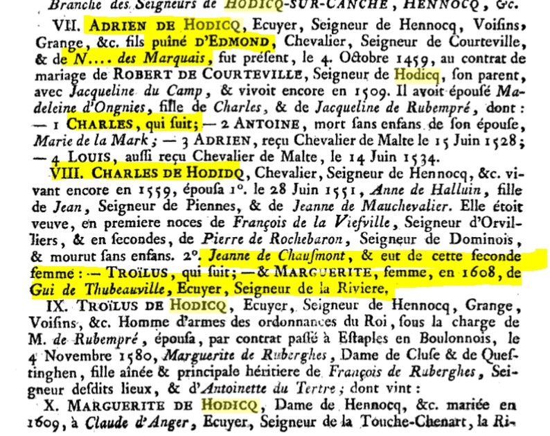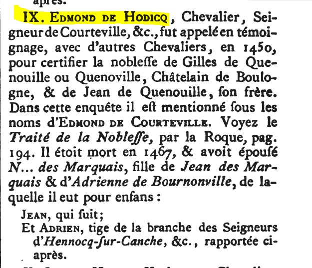 Père : HODICQ (de ) Adrien ( ? - > 1509 )