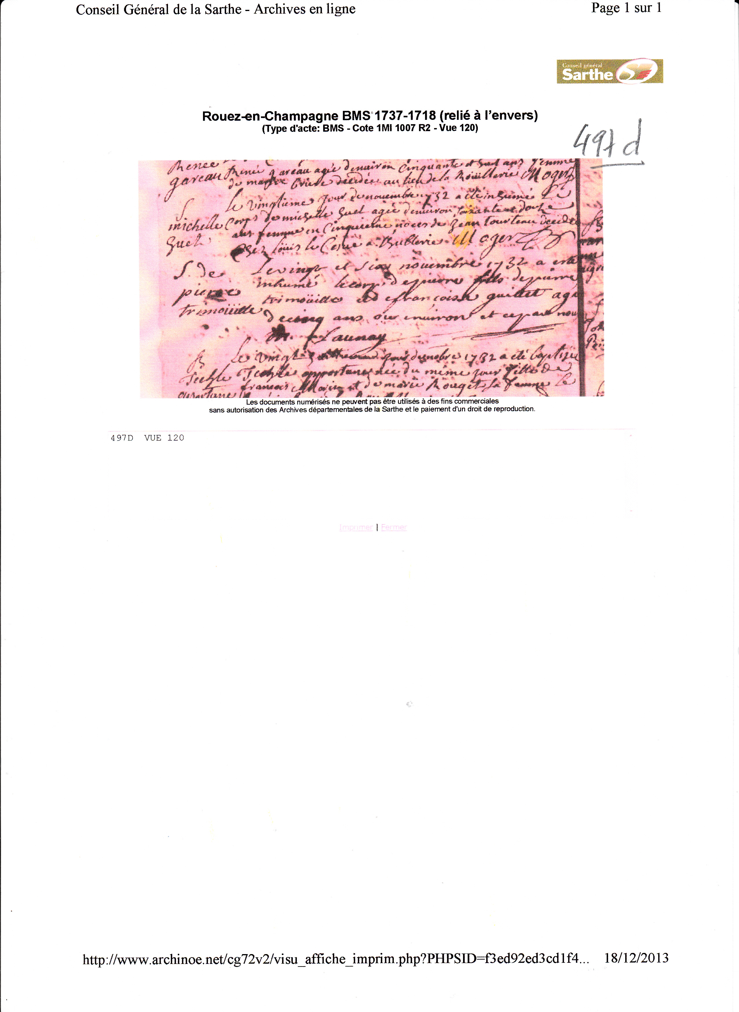 Décès : 20 novembre 1732 à Rouez 72140 ( Source )