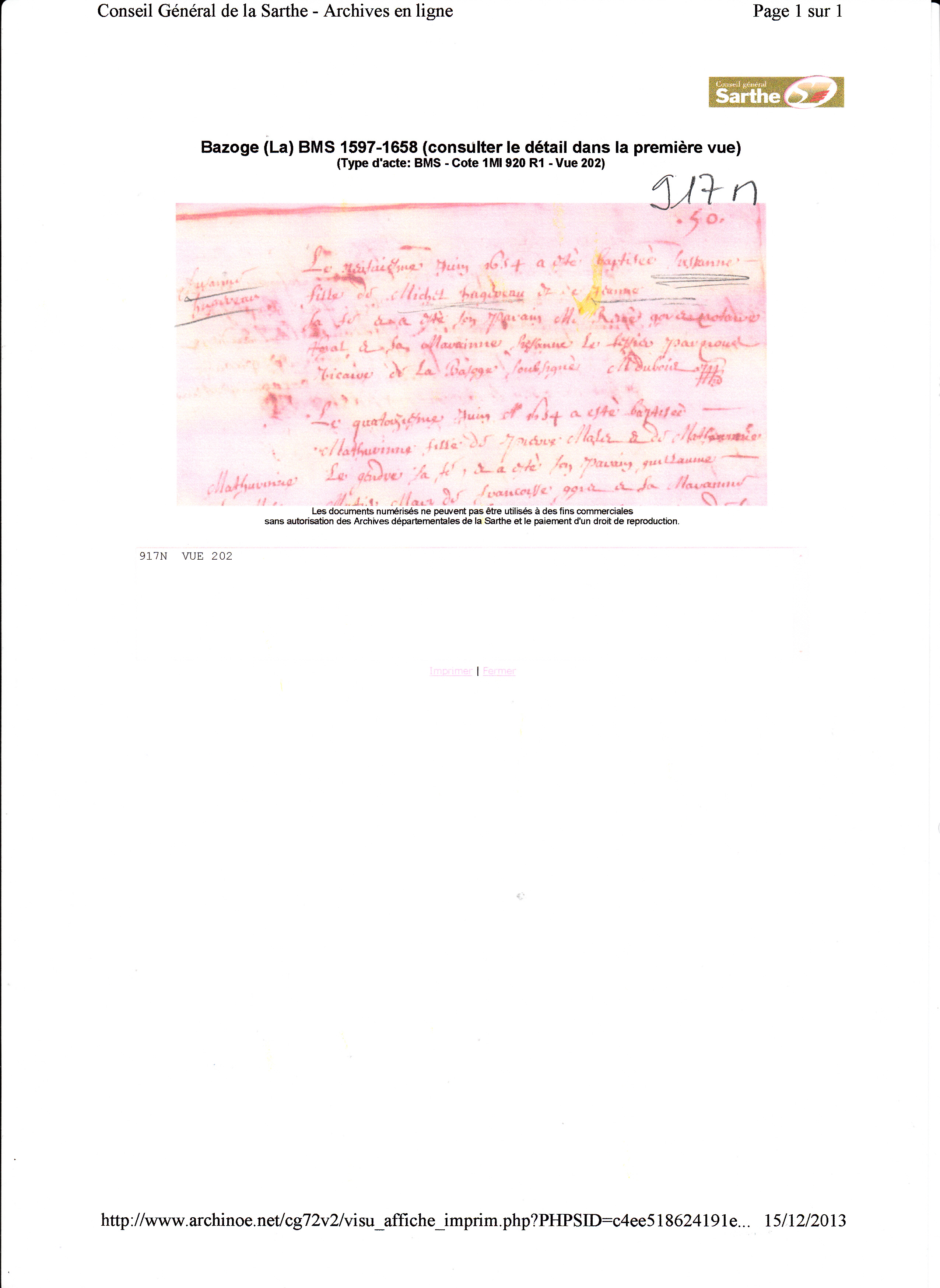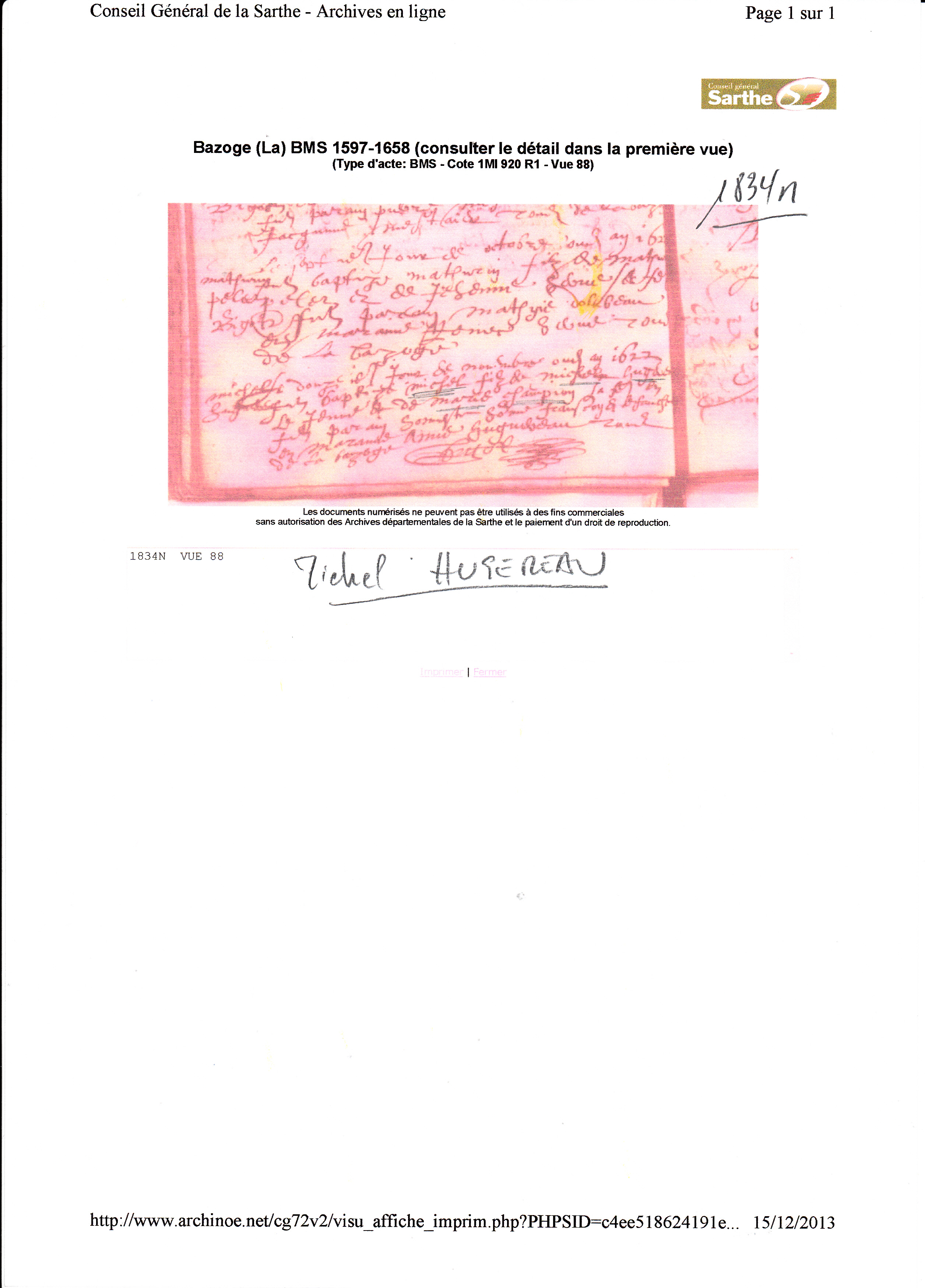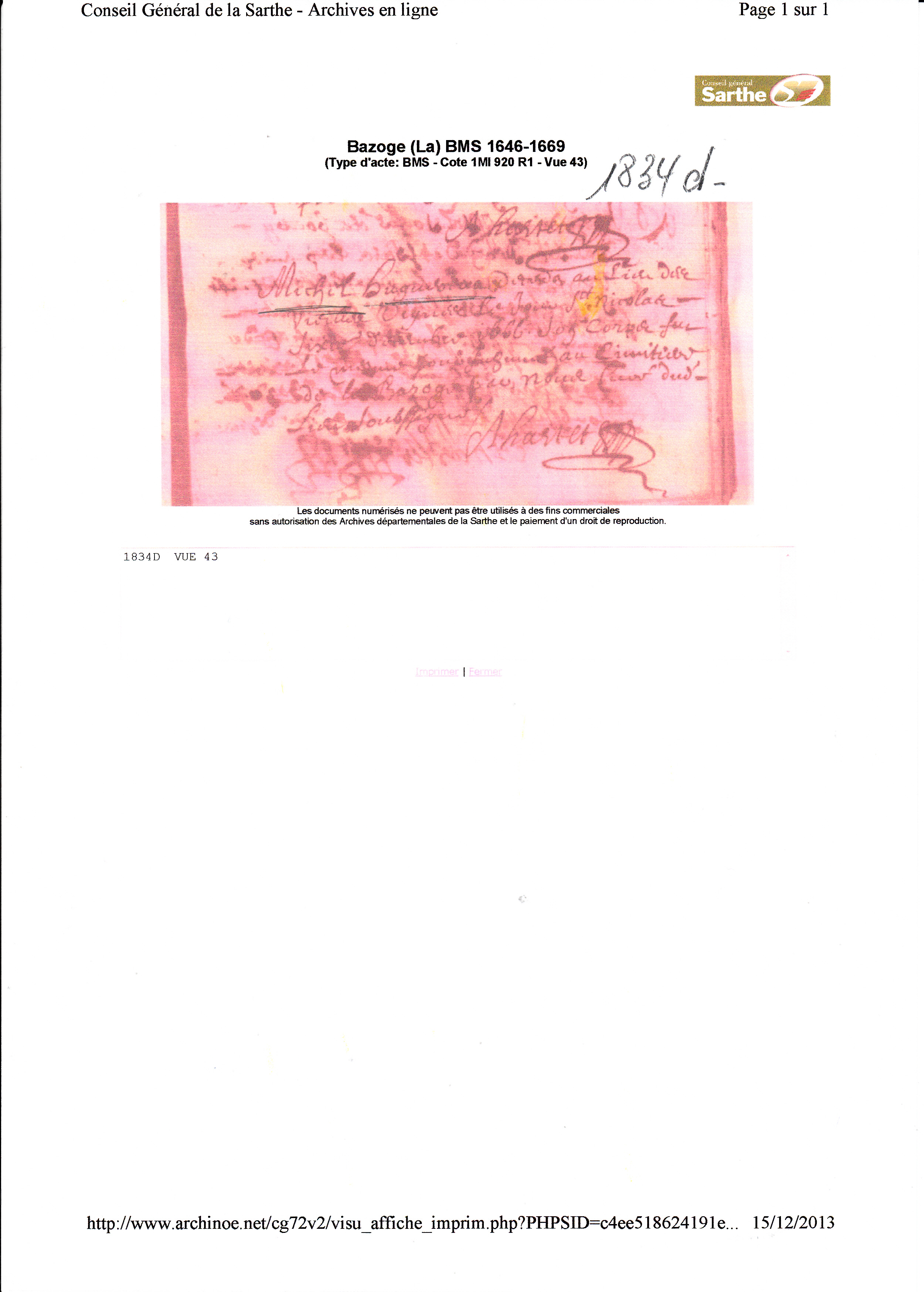 Décès : 6 décembre 1666 à La Bazoge 72650 ( Source )