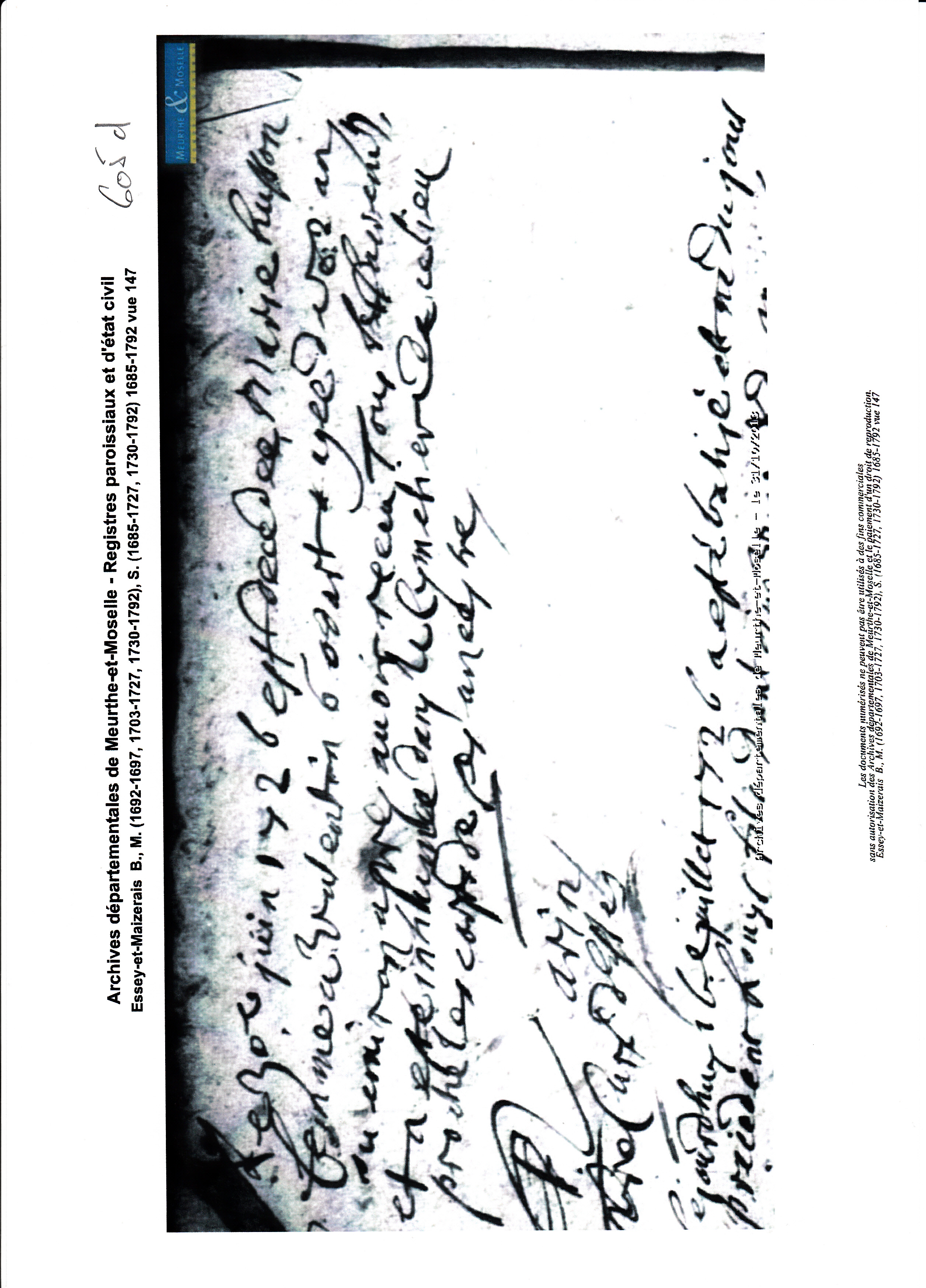 Naissance : vers 1664 à Essey et Maizerais 54470 Décès : 30 juin 1726 à Essey et Maizerais 54470 ( Source )