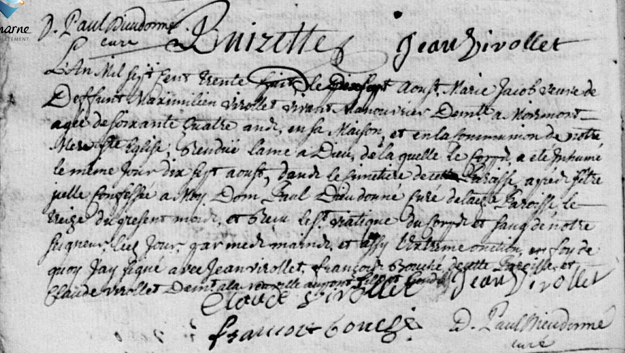 Mariage : 10 octobre 1702 à Moiremont 51 ( Source )