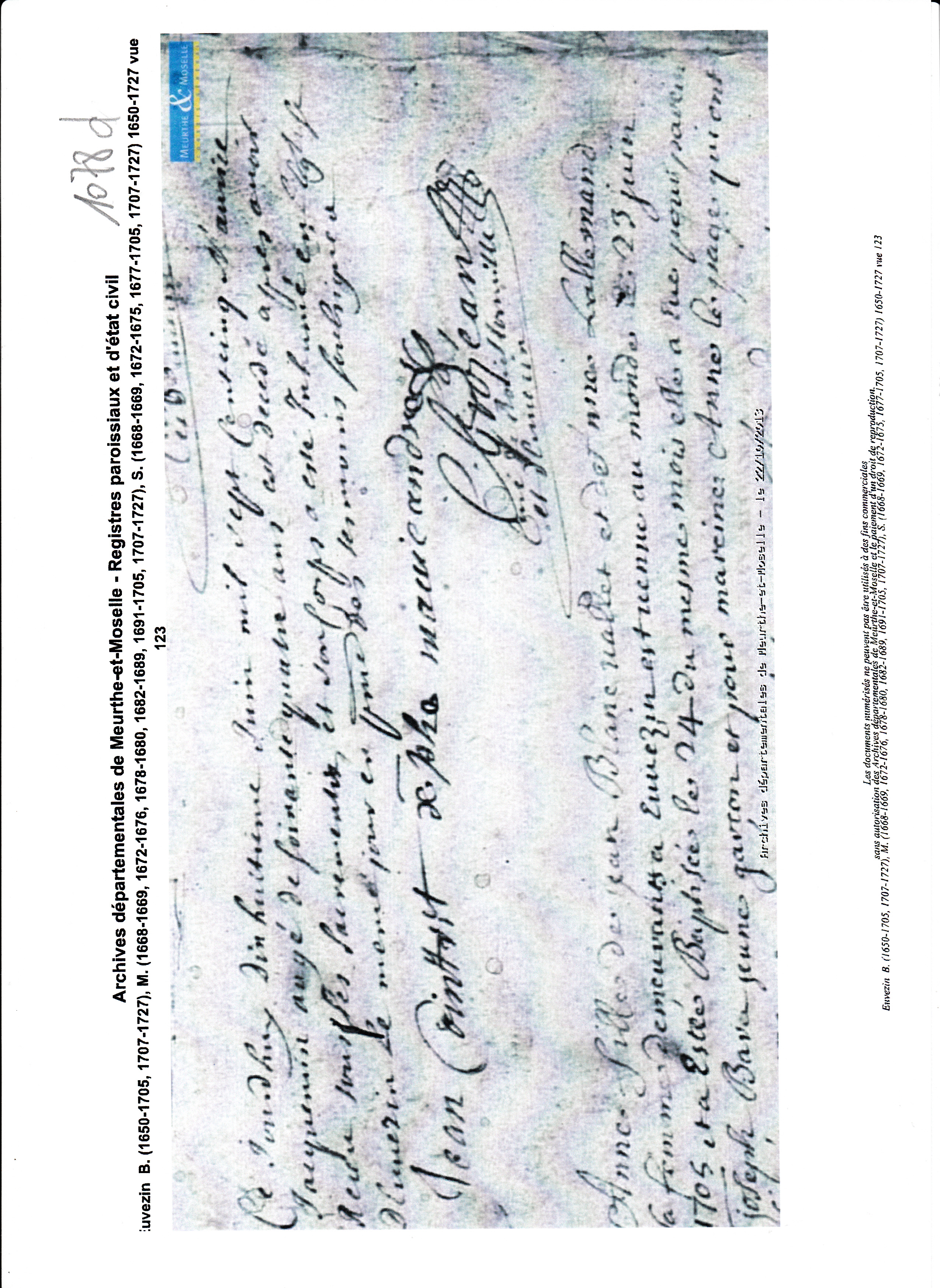 Naissance : 1641 Décès : 18 juin 1705 à Euvezin 54470 ( Source )