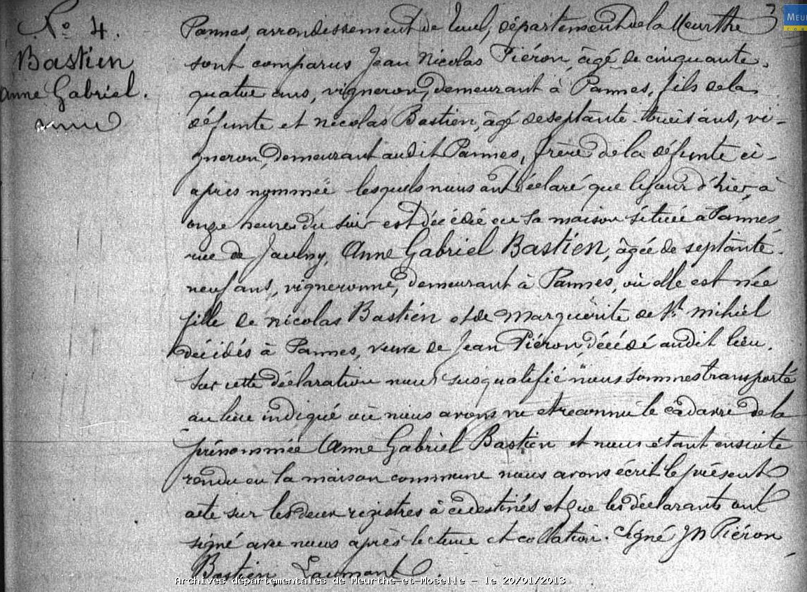Enfants : BASTIEN Nicolas ( ~ 1738 - 1809 )