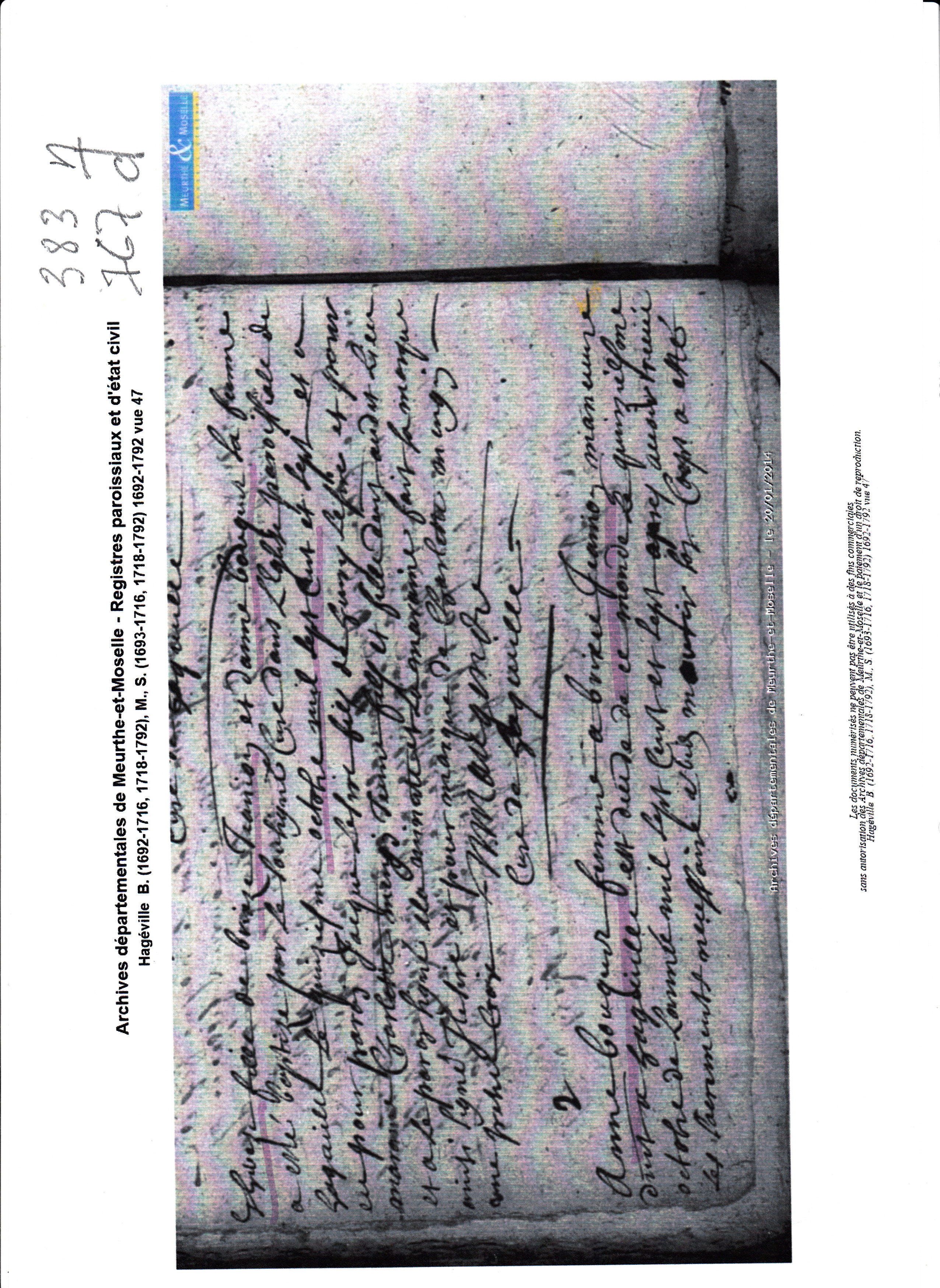 Mariage : 11 juin 1729 à Hageville 54470 ( Source )