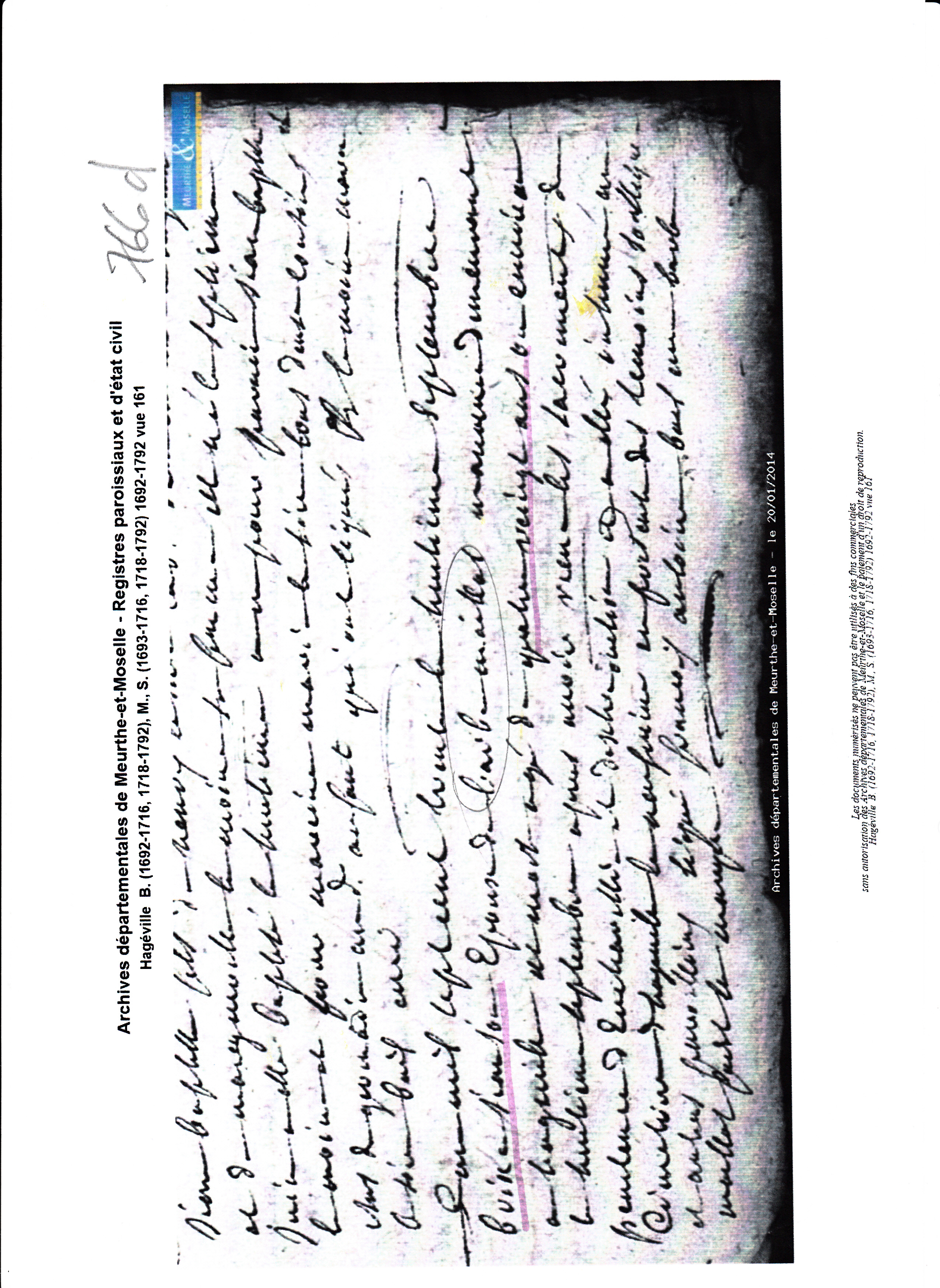 Naissance : 14 mai 1695 à Hageville 54470