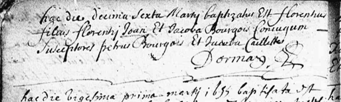 Mère : BOURGEOIS Jacqueline ( ~ 1630 - < 1710 )