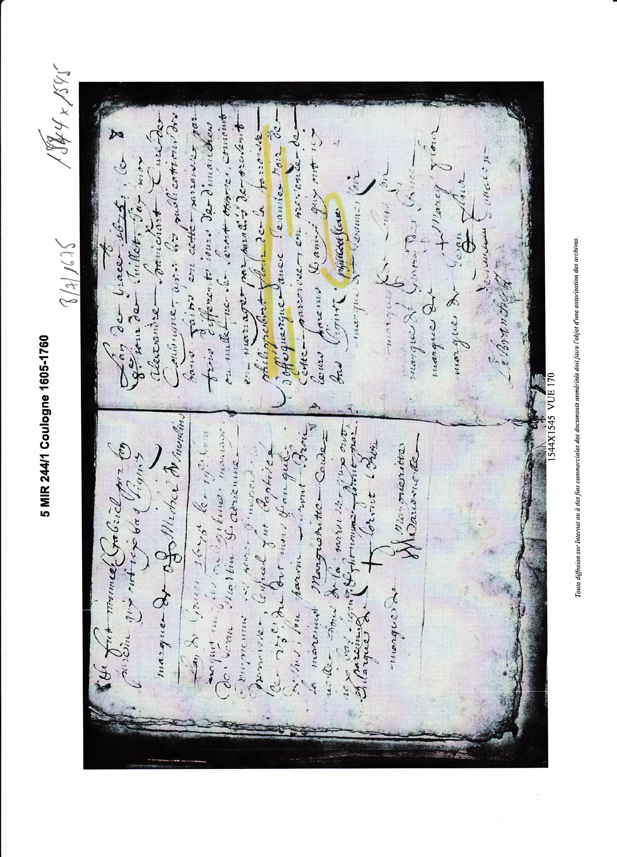 Mariage : 8 juillet 1675 à Coulogne 62137 ( Source )