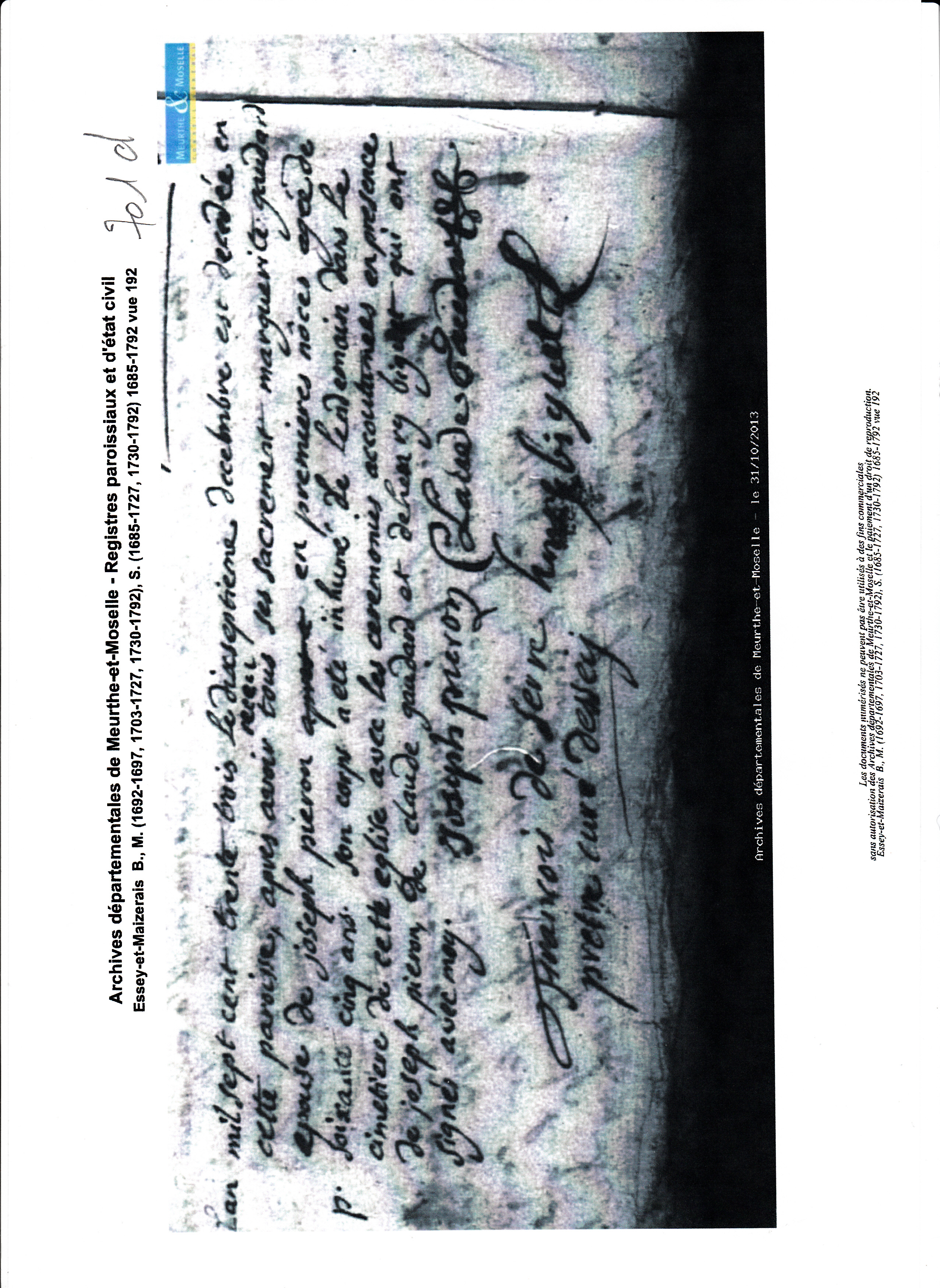 Mariage : 15 janvier 1704 à Essey et Maizerais 54470 ( Source )