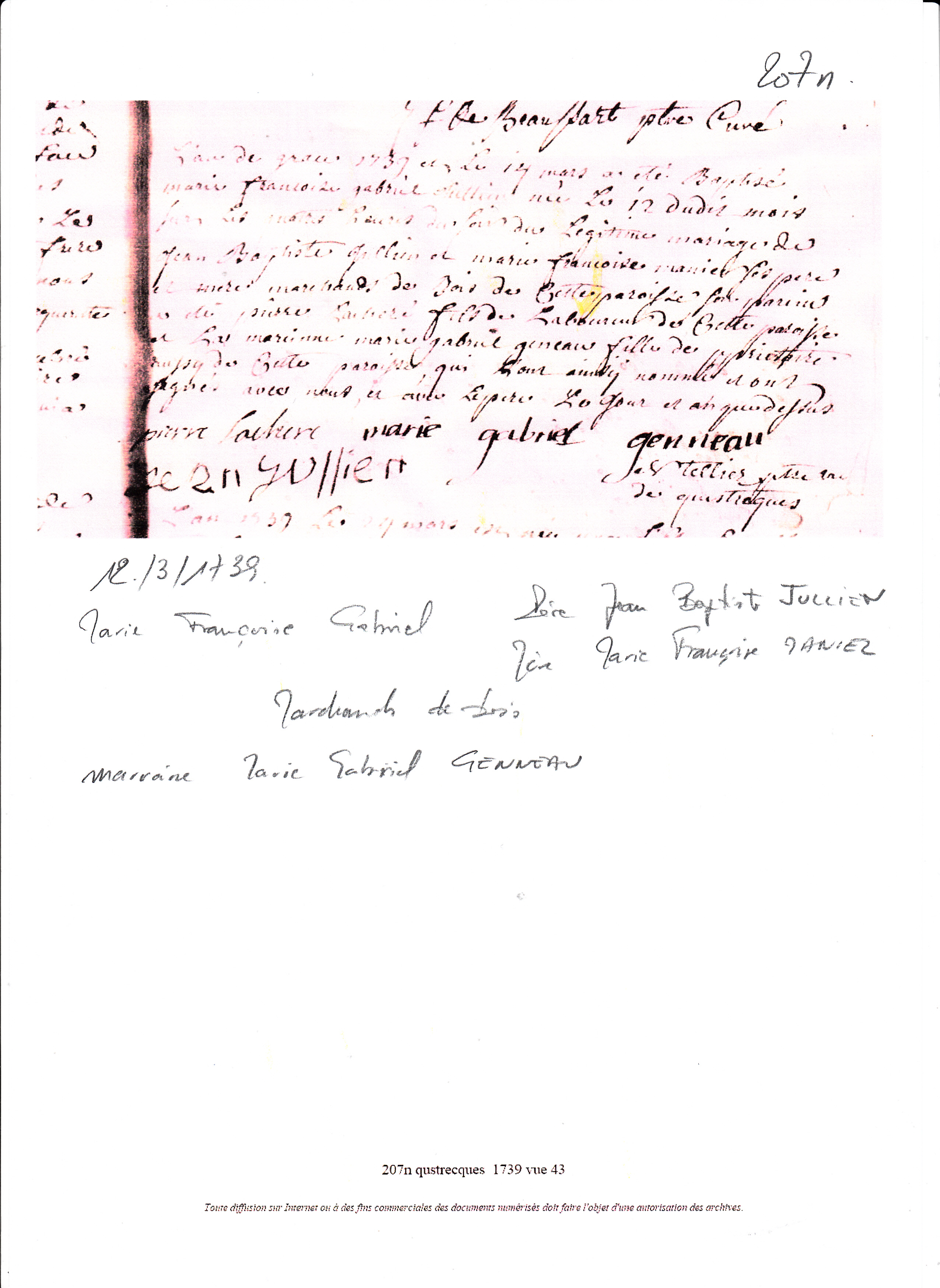 Père : JULIEN Jean Baptiste ( 1685 - 1746 )