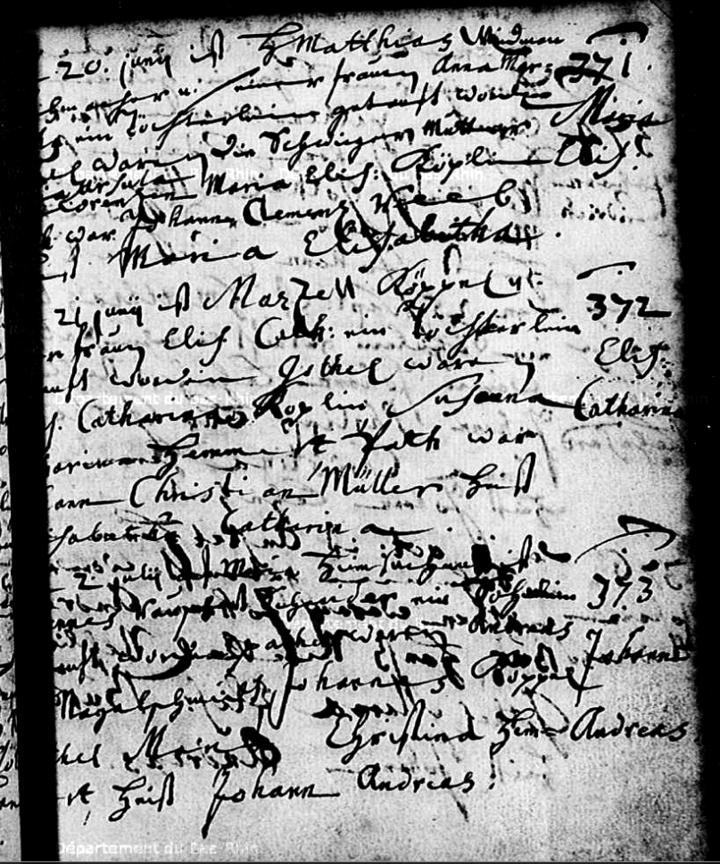 Naissance : 1671 à Dehlingen 67430